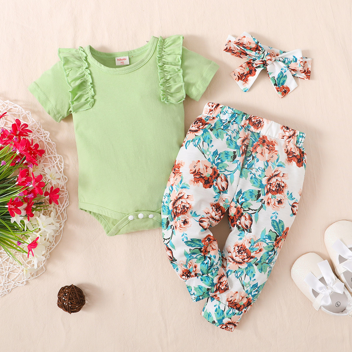hibobi Girl Baby Green Floral Print Trouser Suit Wholesale