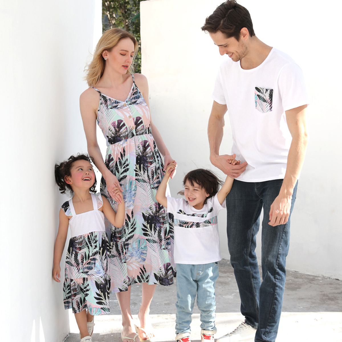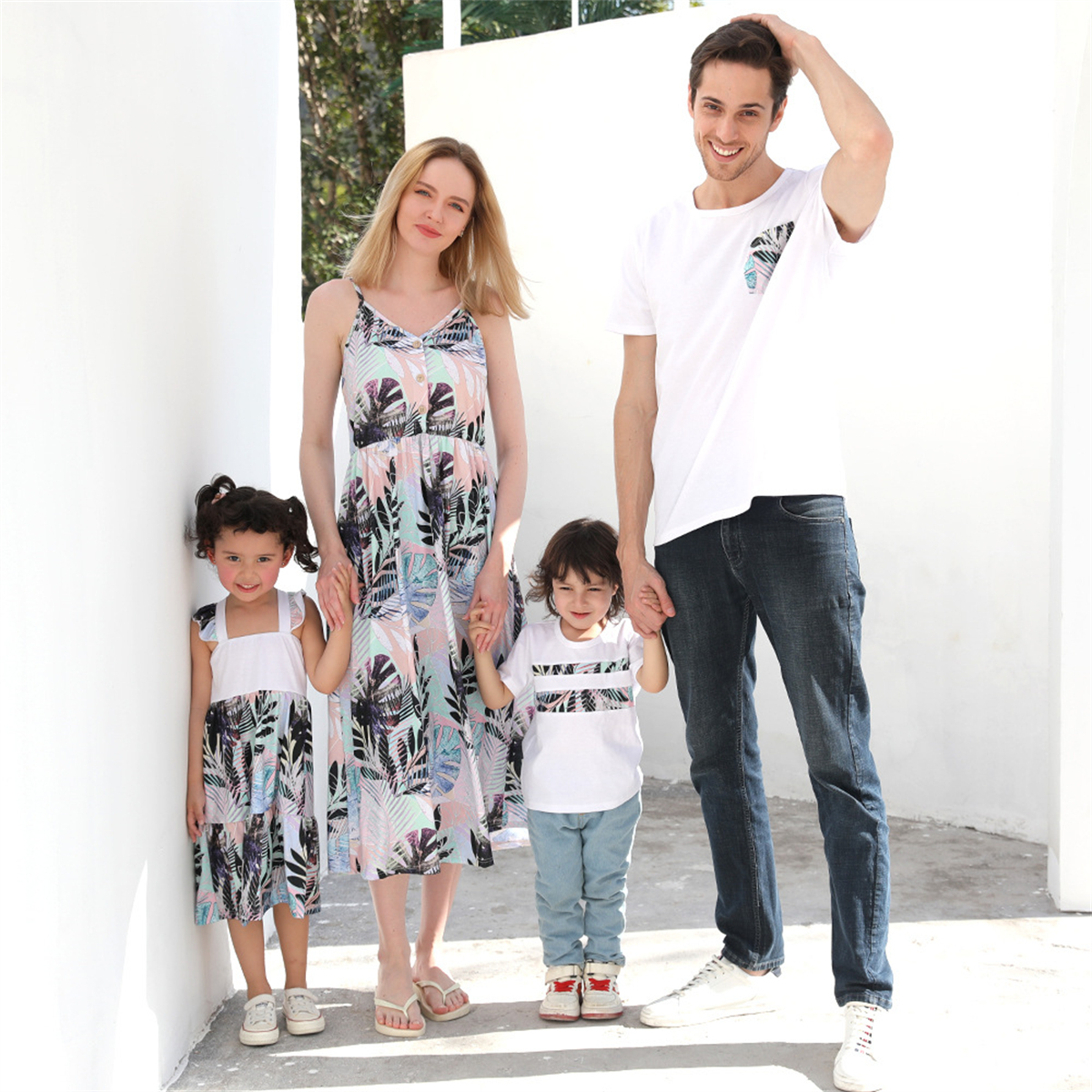 Family Matching Floral Print Sleeveless Dress and T-shirt Wholesale