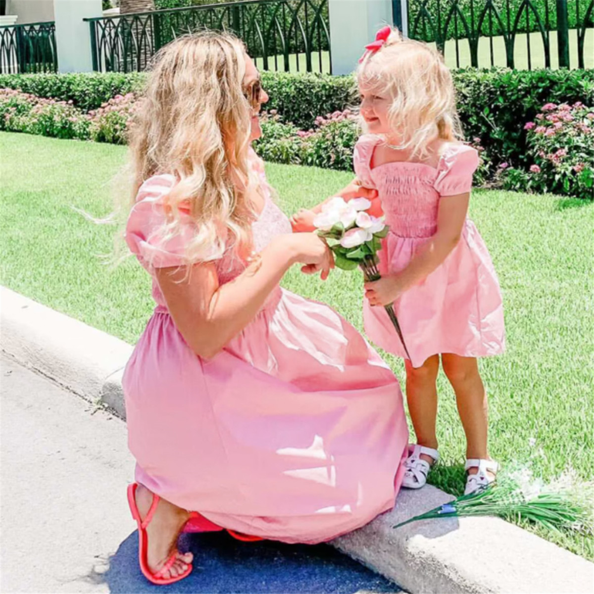 Sweet Solid Color Puff Sleeve Dress for Mom and Me Wholesale