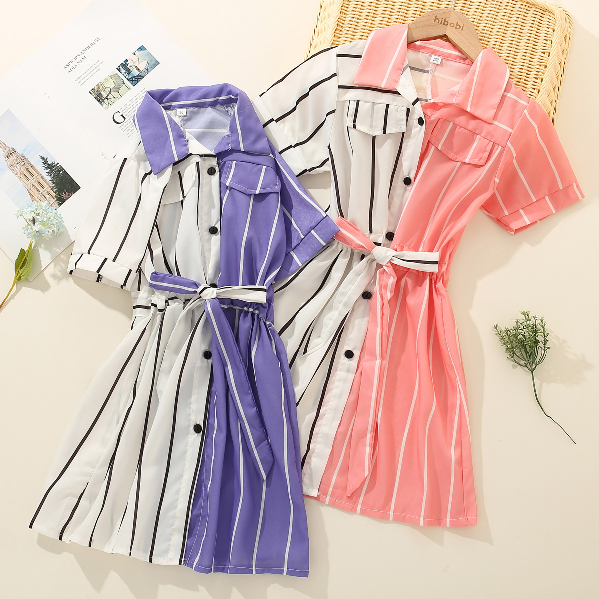 Kids Girls Summer Color-block Stripes Shirt Dress Wholesale