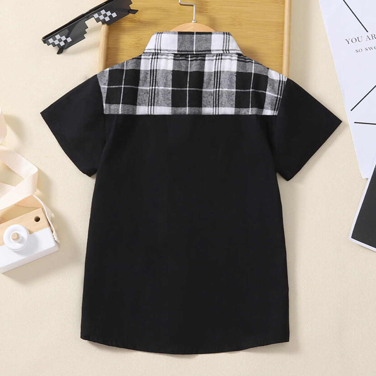 Boys' Summer Plaid Panel Short Sleeve Shirt Wholesale
