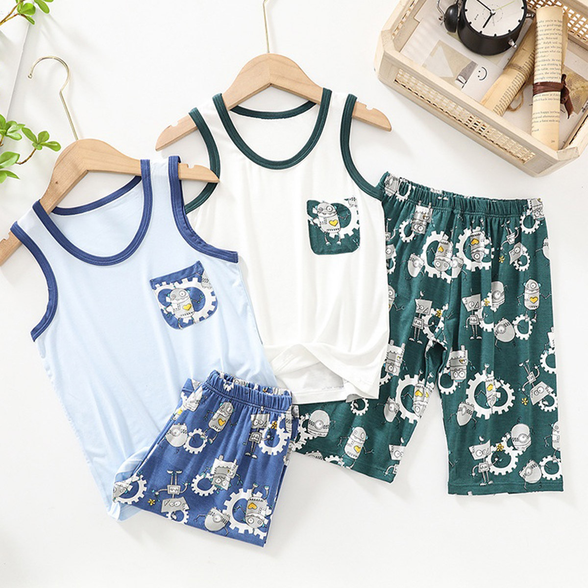 Boy Summer Cartoon Robot Color-block Modal Home Wear Set Wholesale