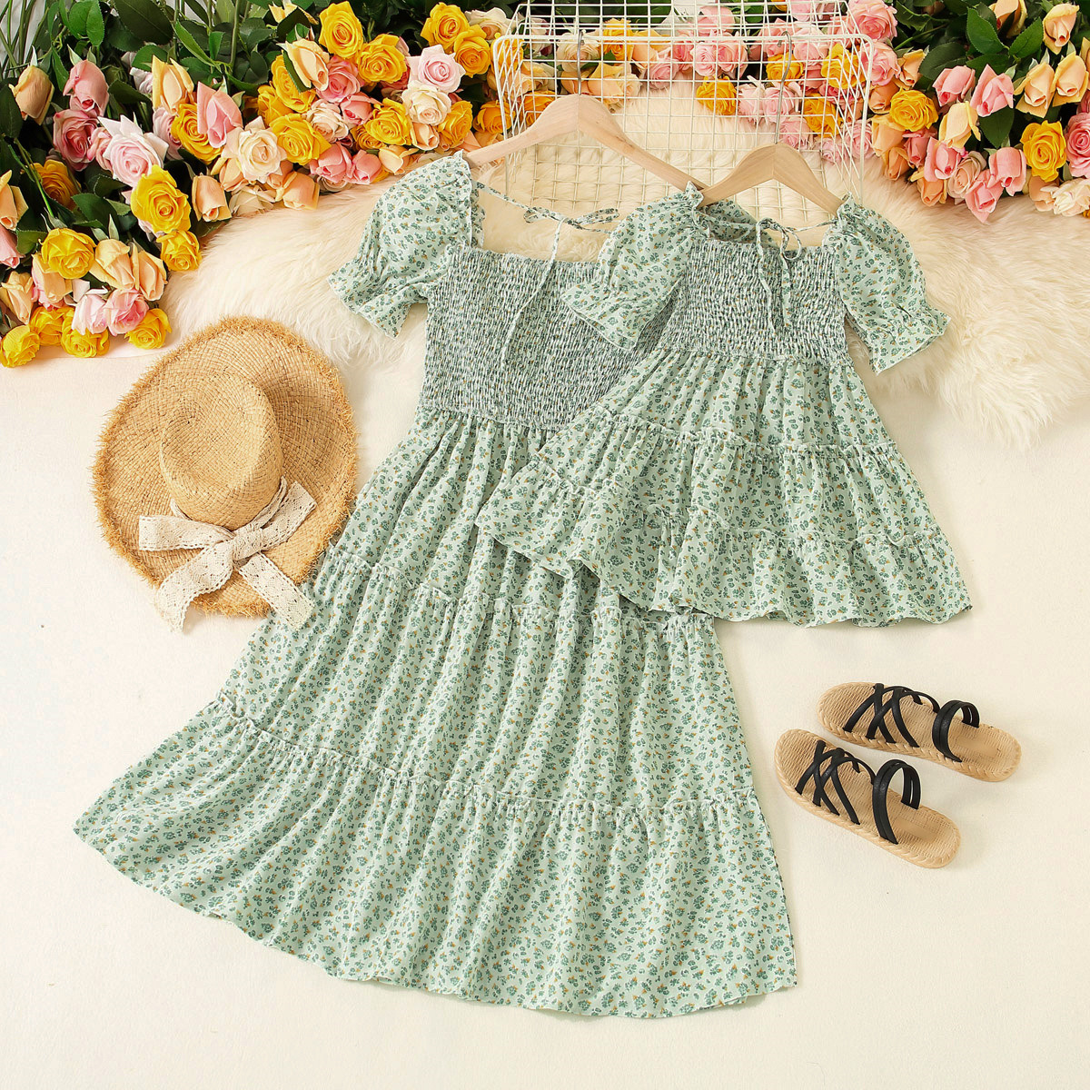 Sweet Floral Print Puff Sleeve Dress for Mom and Me Wholesale
