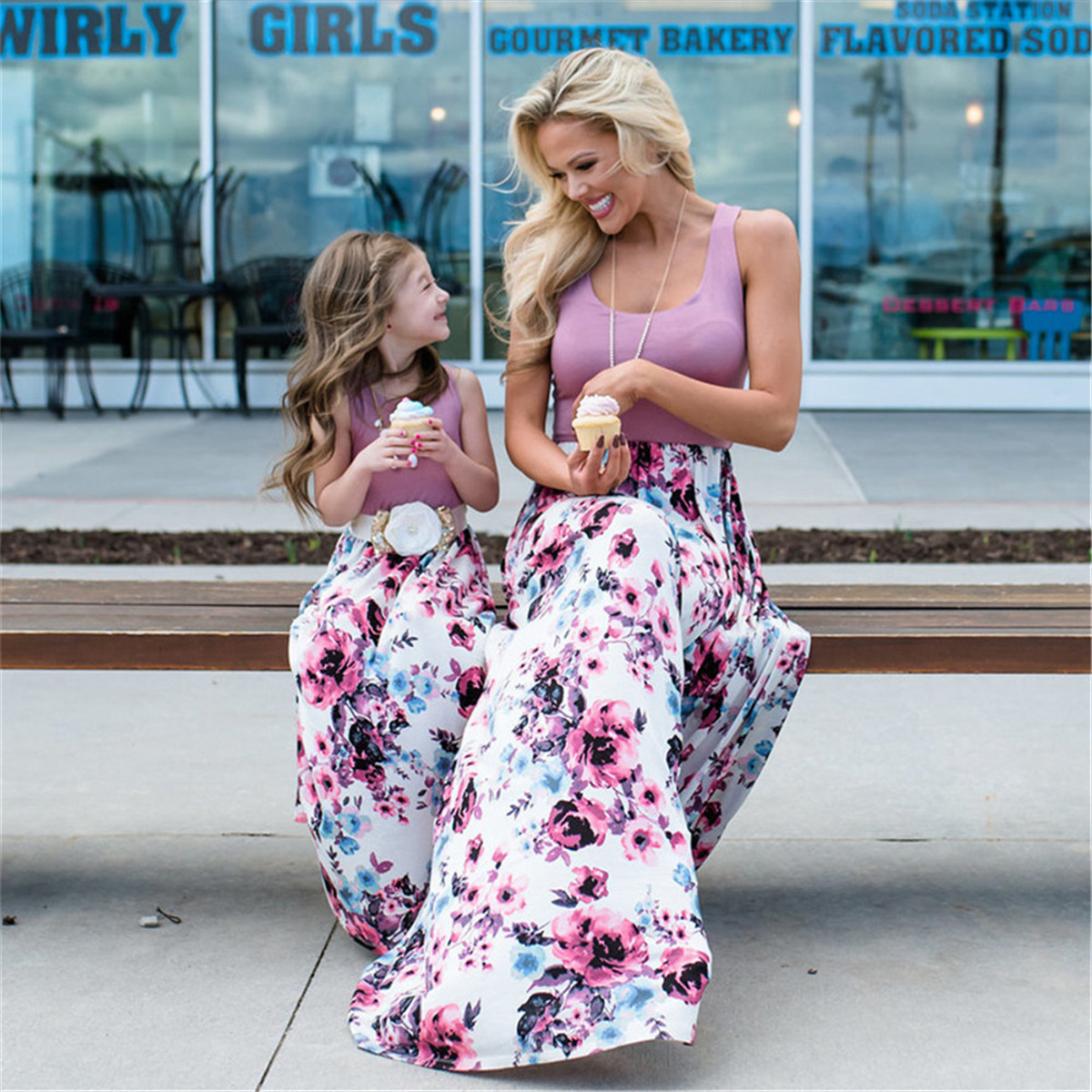 Elegant Floral Print Sleeveless Dress for Mom and Me Wholesale