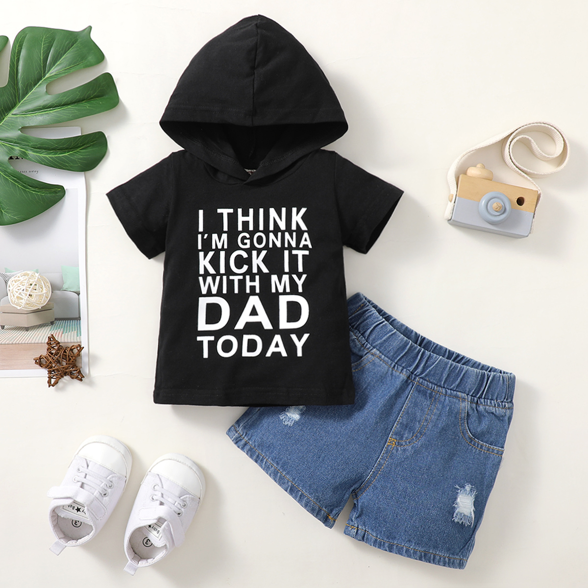 Toddler Boy Casual Letter Print Hooded T-shirt & Shorts Wholesale