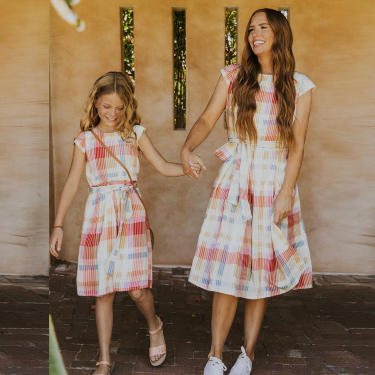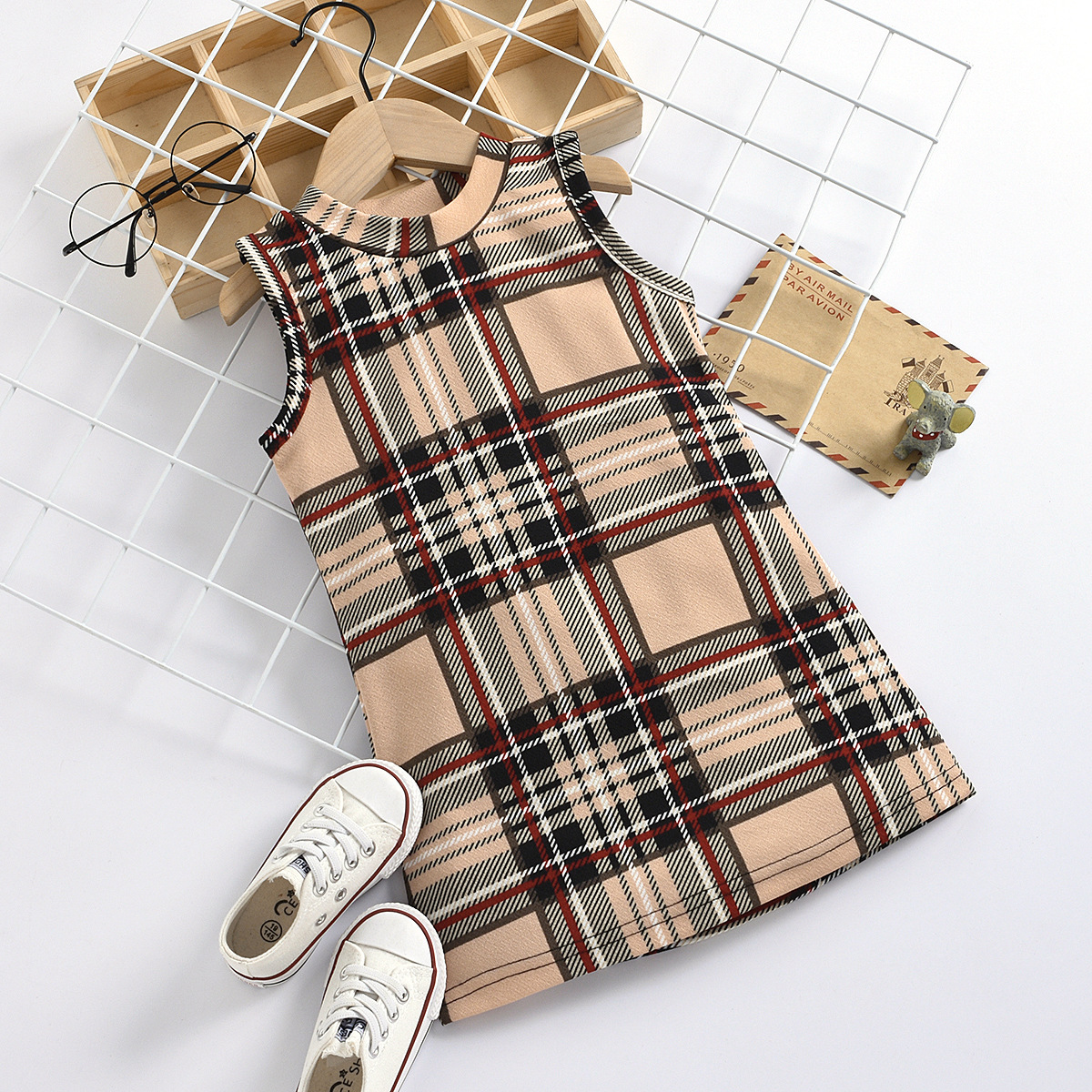 Causal Plaid Pattern Print Sleeveless Dress for Mom and Me Wholesale