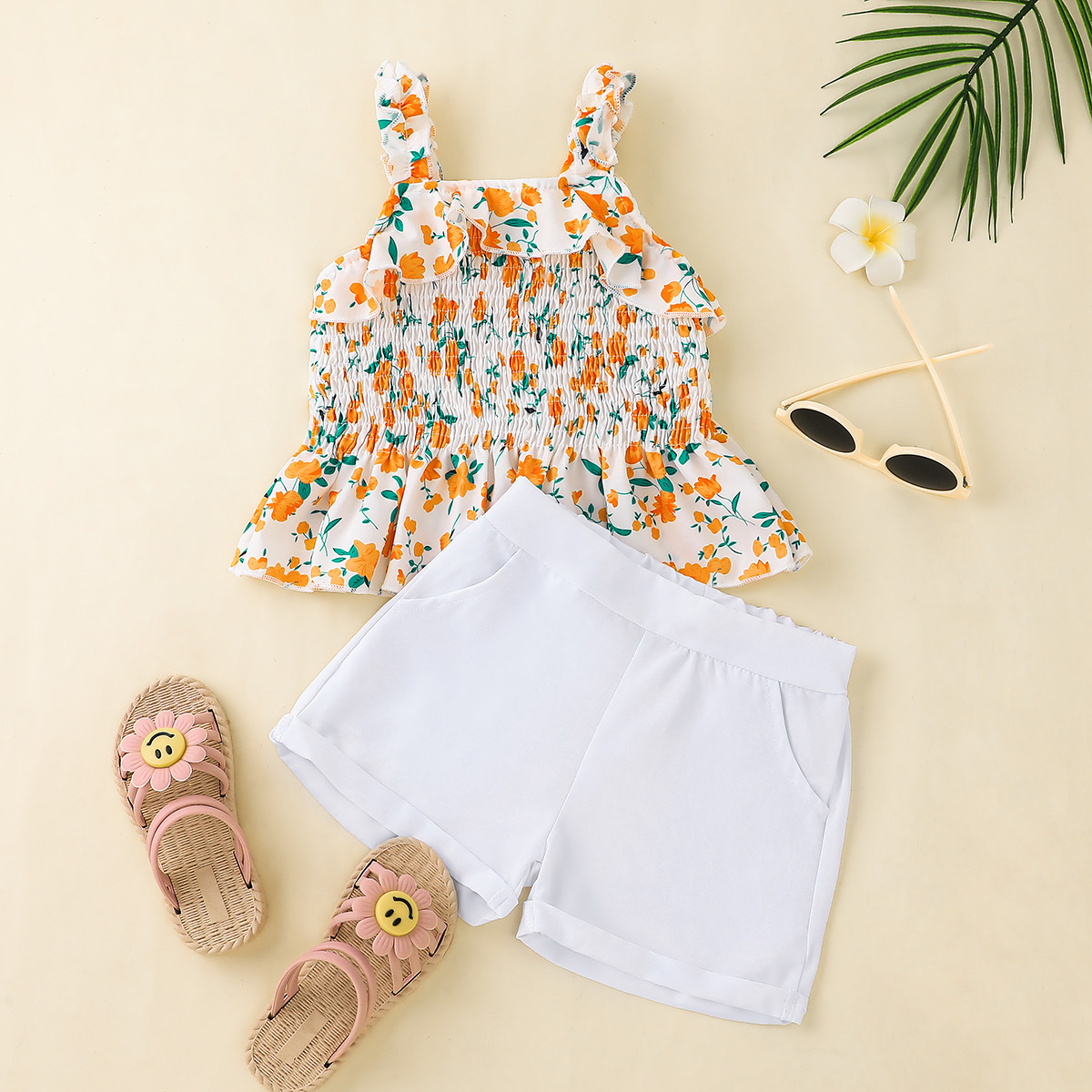 Toddler Girl Sweet Floral Ruffle Vest Top & Shorts Wholesale