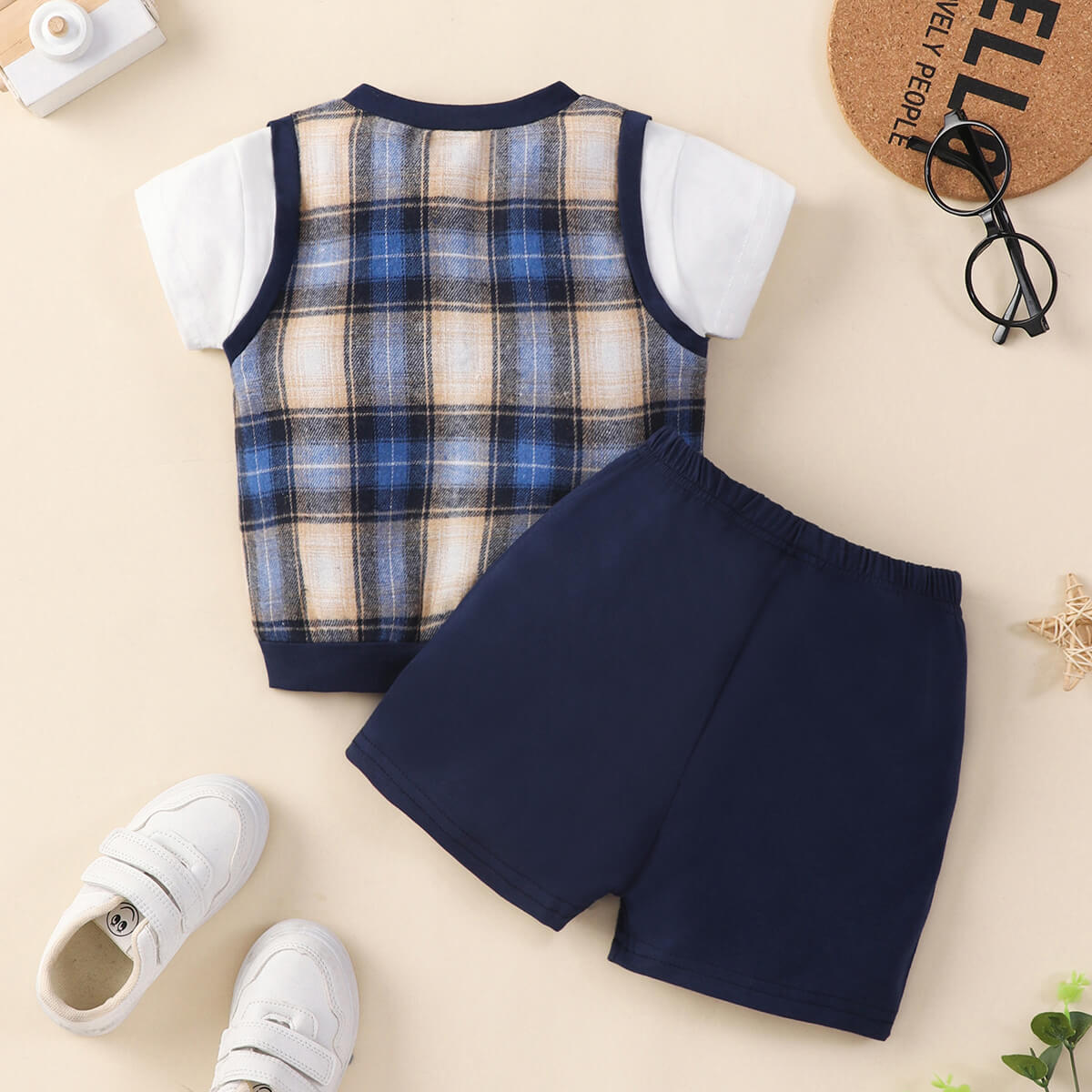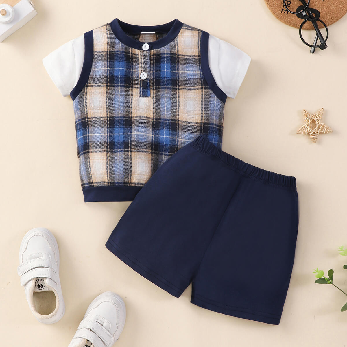 Toddler Boy Casual Vintage Plaid T-shirt & Shorts Wholesale