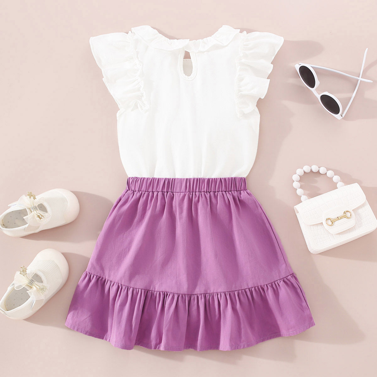Toddler Girl Sweet Cute Ruffle Tank Top & Skirt Wholesale