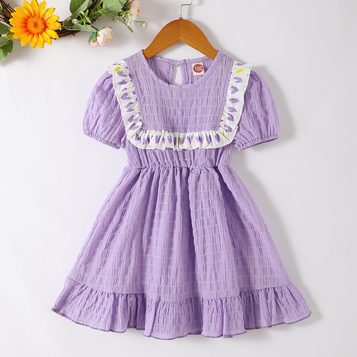 Toddler Girls Solid Single-breasted Ruffles Dress Wholesale