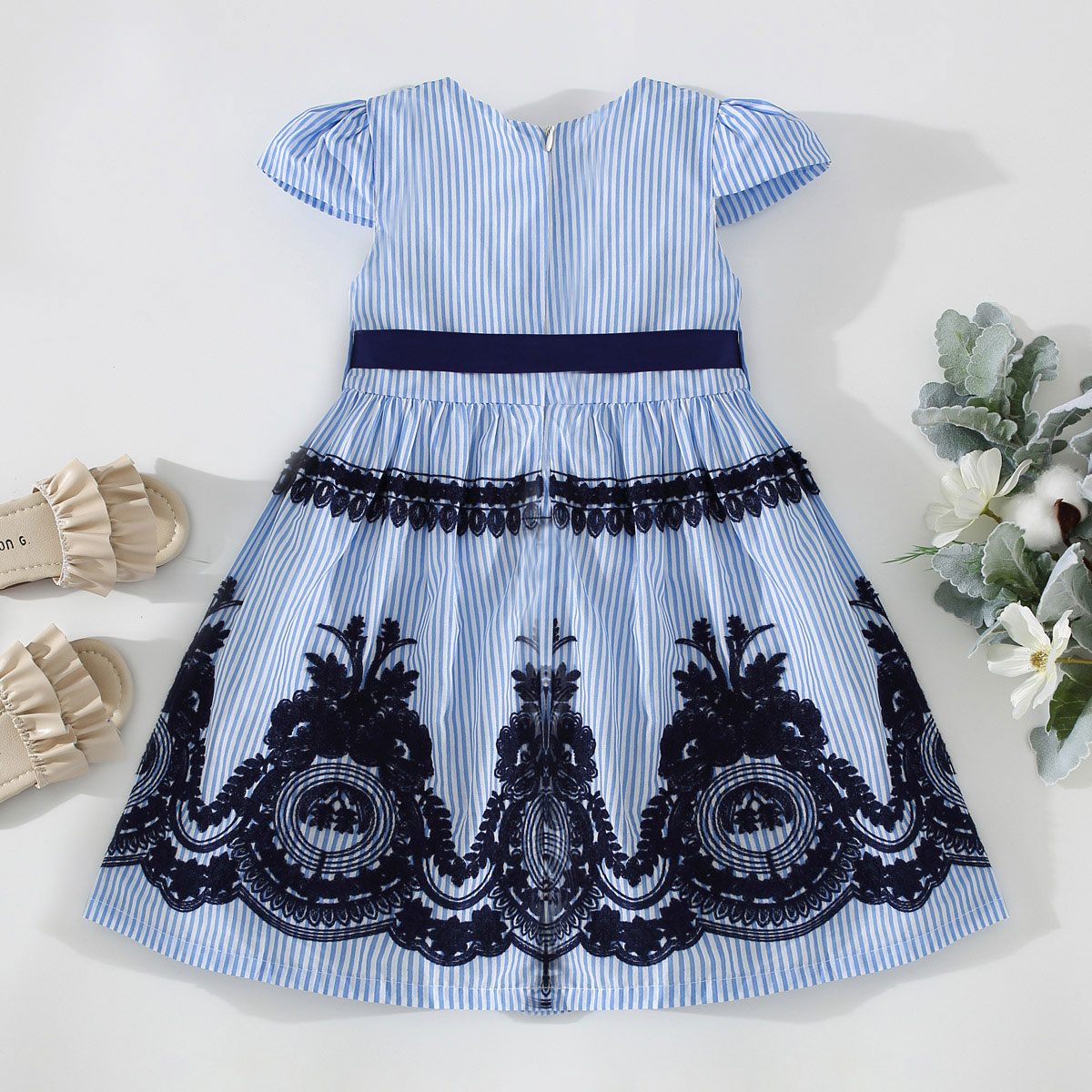 Toddler Girl Casual Sweet jacquard Striped Dress Wholesale