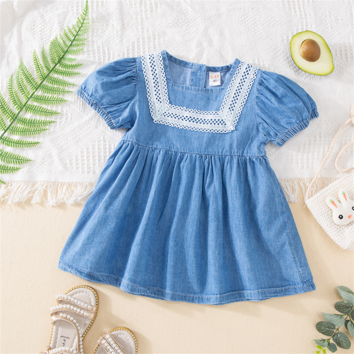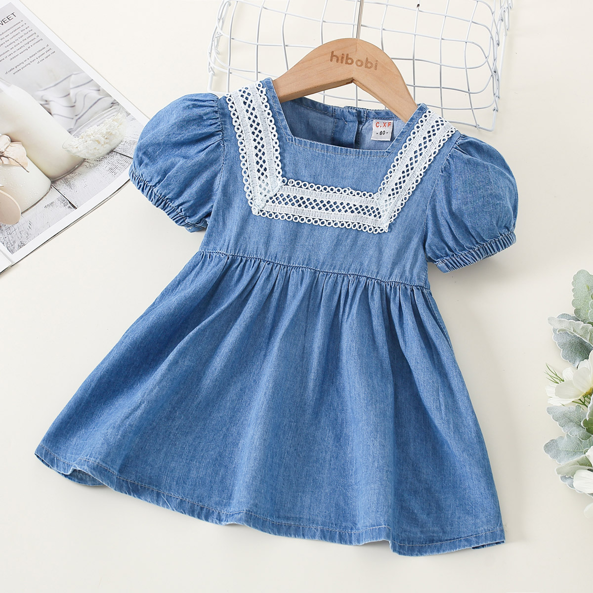 Toddler Girls Solid Round Neck Denim Dress Wholesale