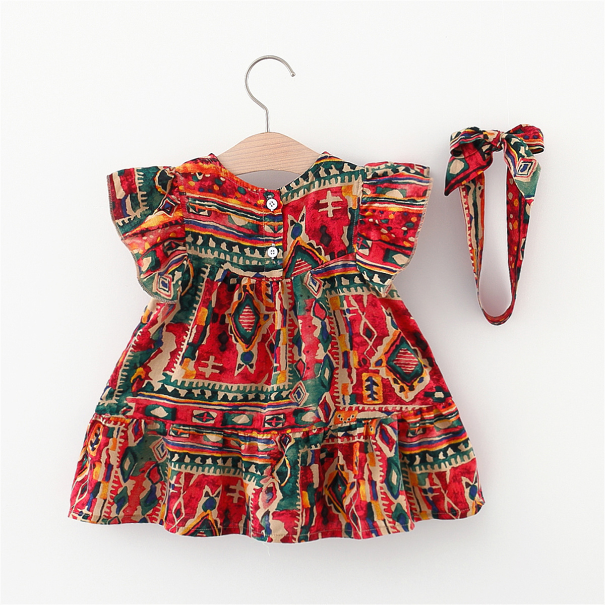 Toddler Girls Butterfly Sleeve Boho Umbrella Skirt Dress Wholesale