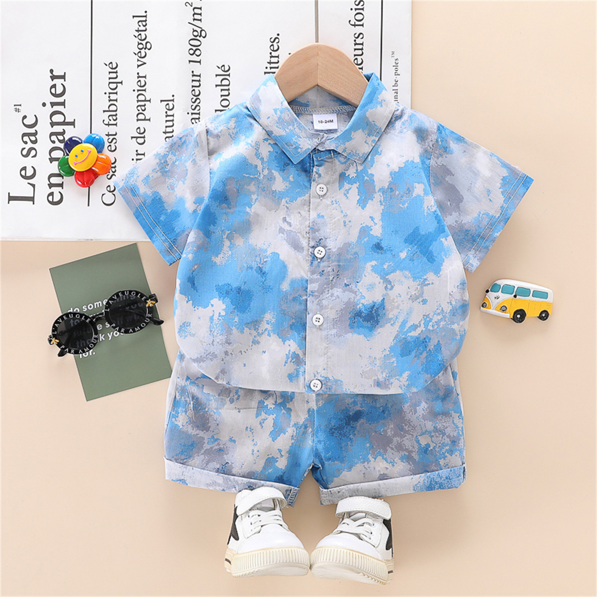 Toddler Boy Camouflage Lapel Color-block Top & Shorts Wholesale