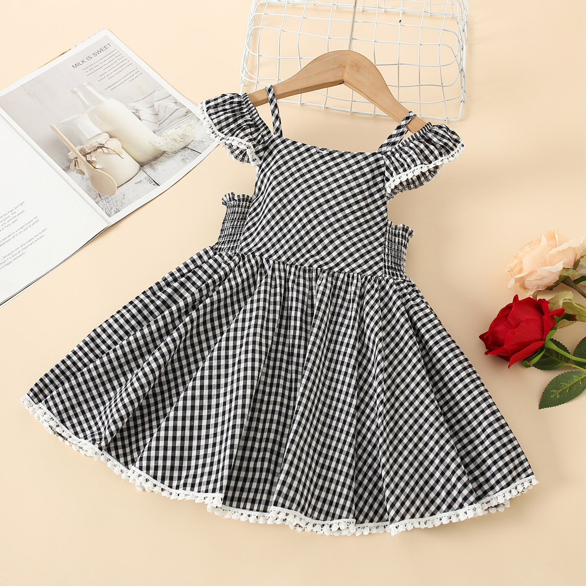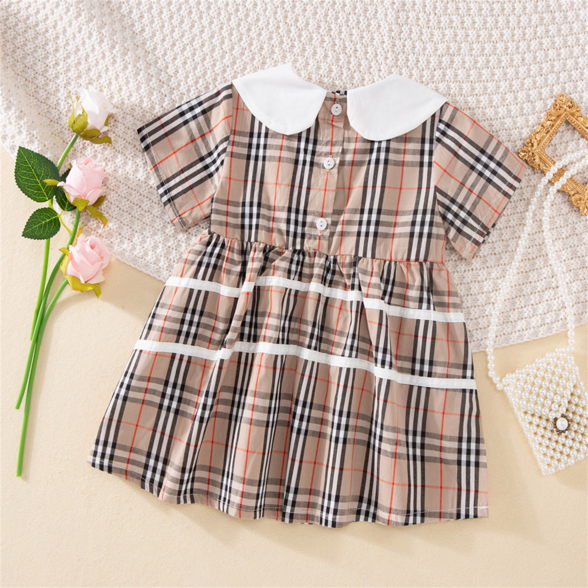 Toddler Girls Plaid Lapel Color-block Dress Wholesale