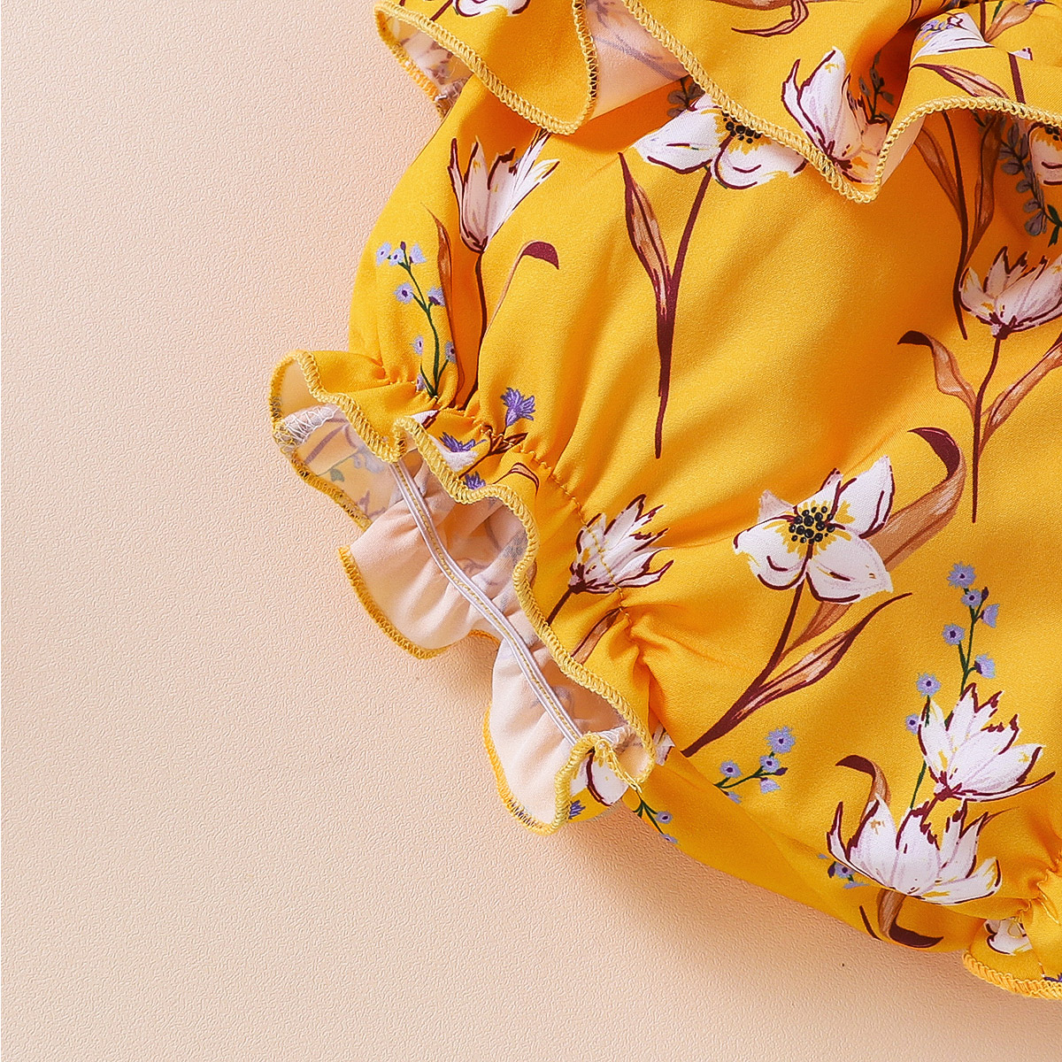 bibobi Girl Baby Yellow Floral Print Fly Sleeve Bodysuit Wholesale