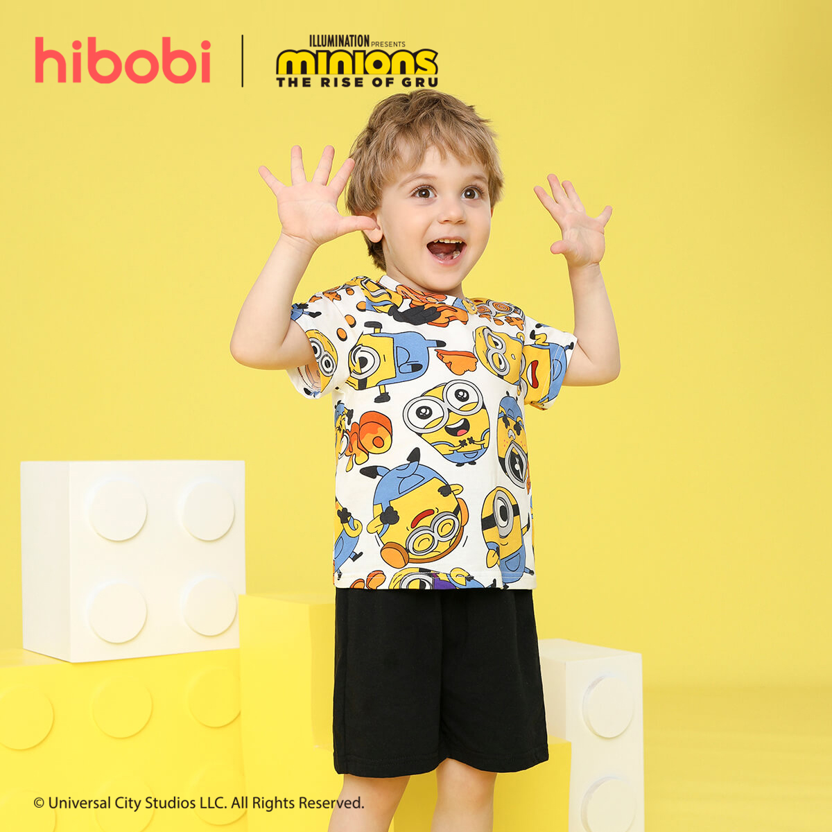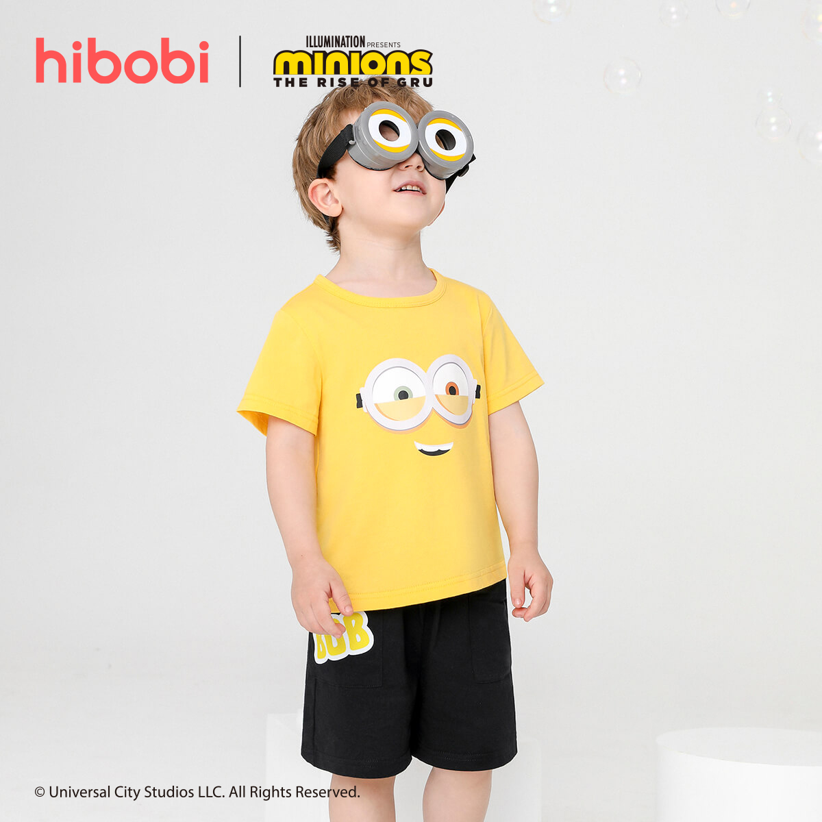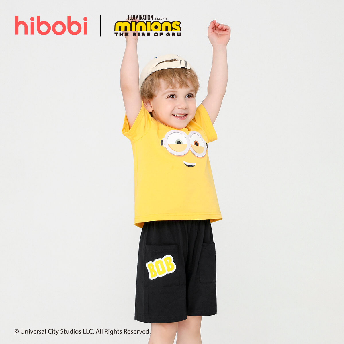 Minions × toddler boy Printed Yellow Top Black Shorts Set Wholesale