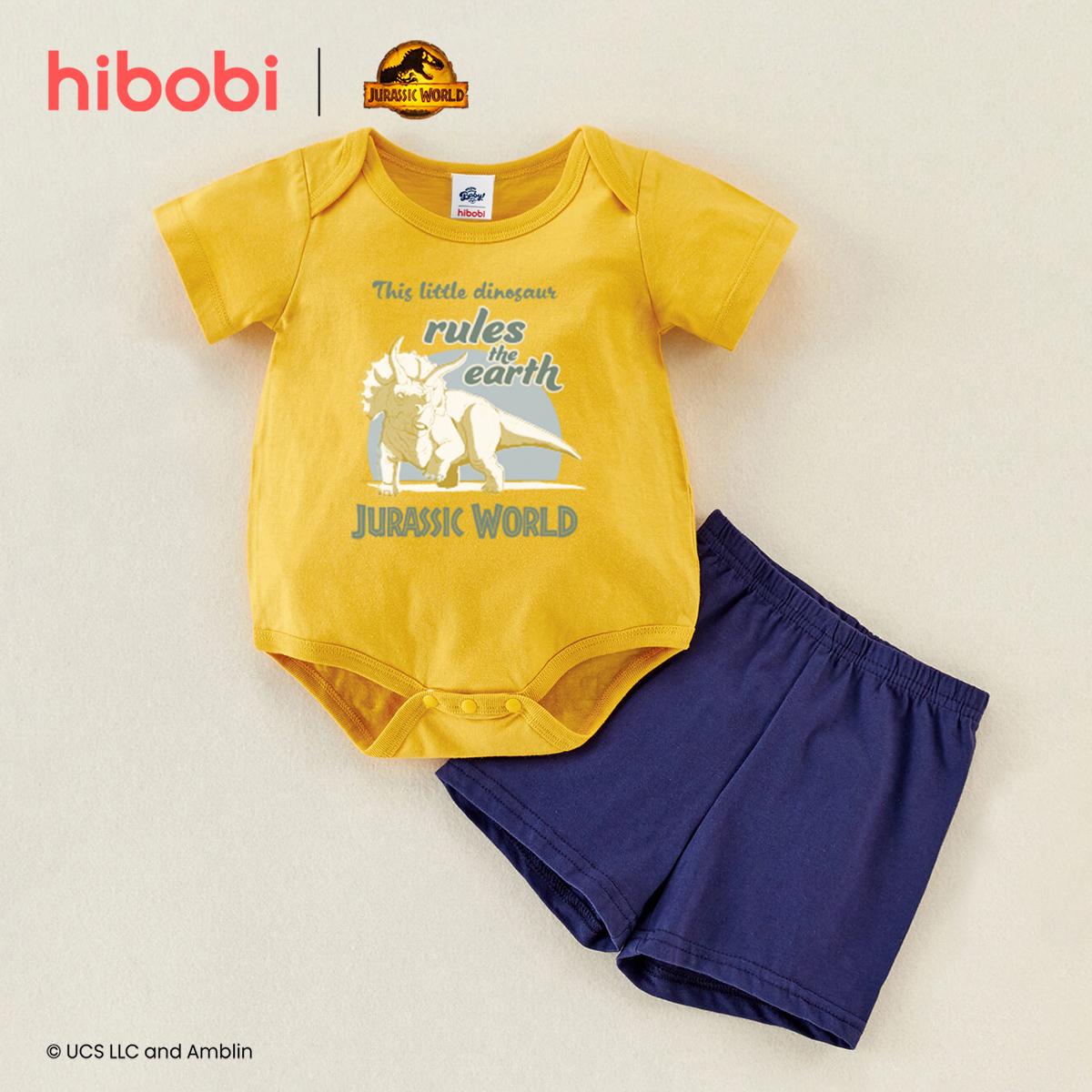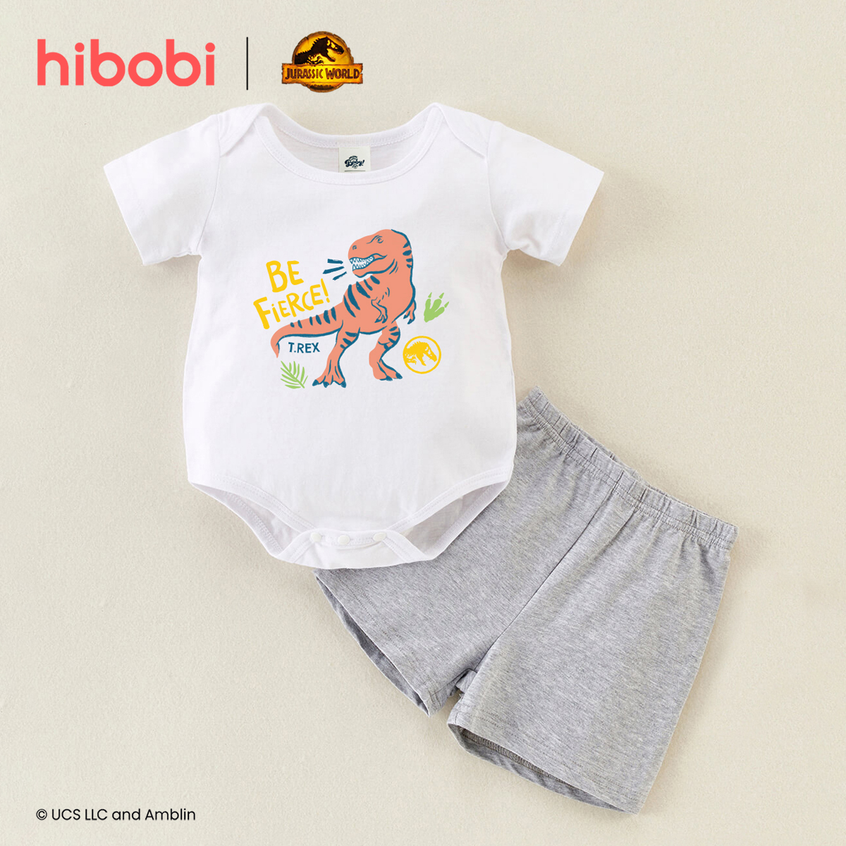 hibobi×Jurassic Baby Cartoon Print Short Sleeve Cotton Jumpsuit&Shorts Wholesale
