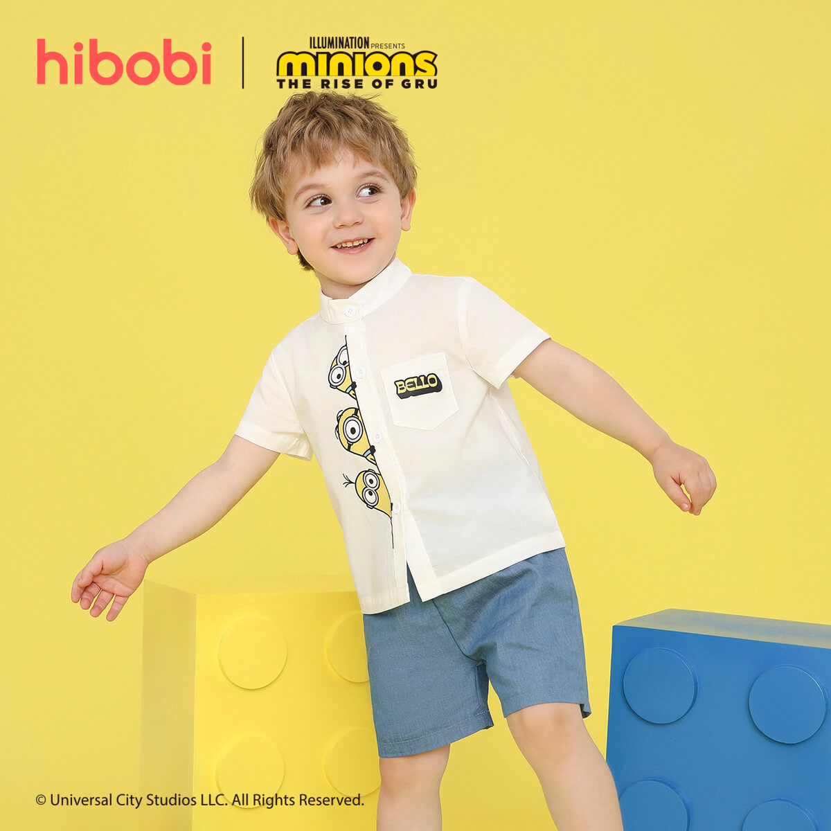 Minions × toddler boy Printed White Shirt & Denim Shorts Suit Wholesale