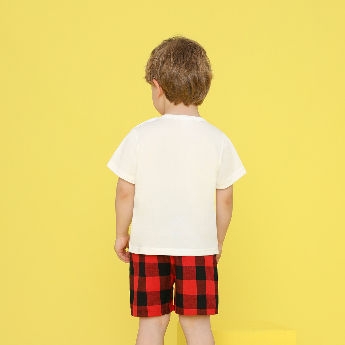 Minions × toddler boy Printed Red & Black Checkered Trouser Suit Wholesale