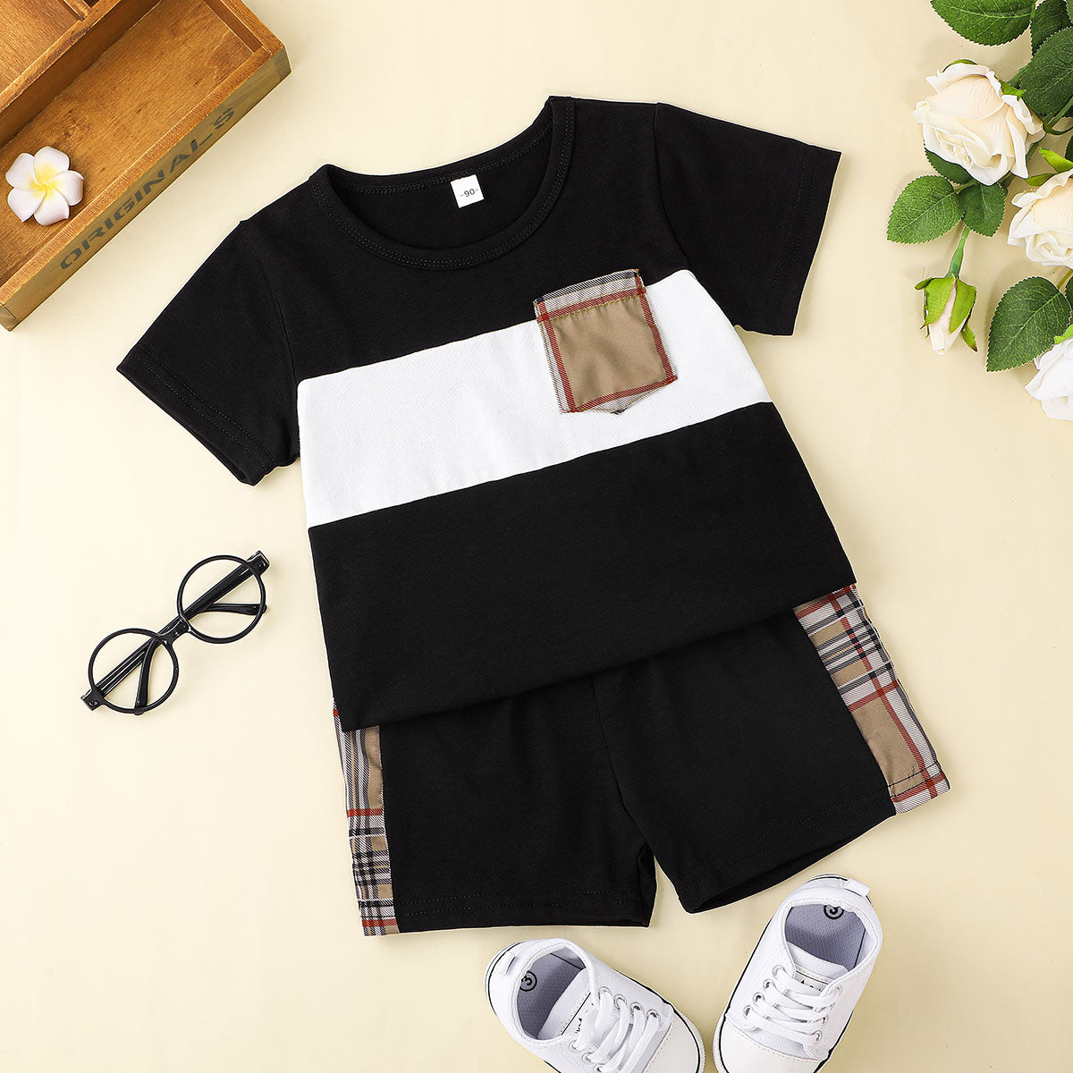 Toddler Boy Plaid Fabric Blocking Casual T-shirt & Shorts Wholesale