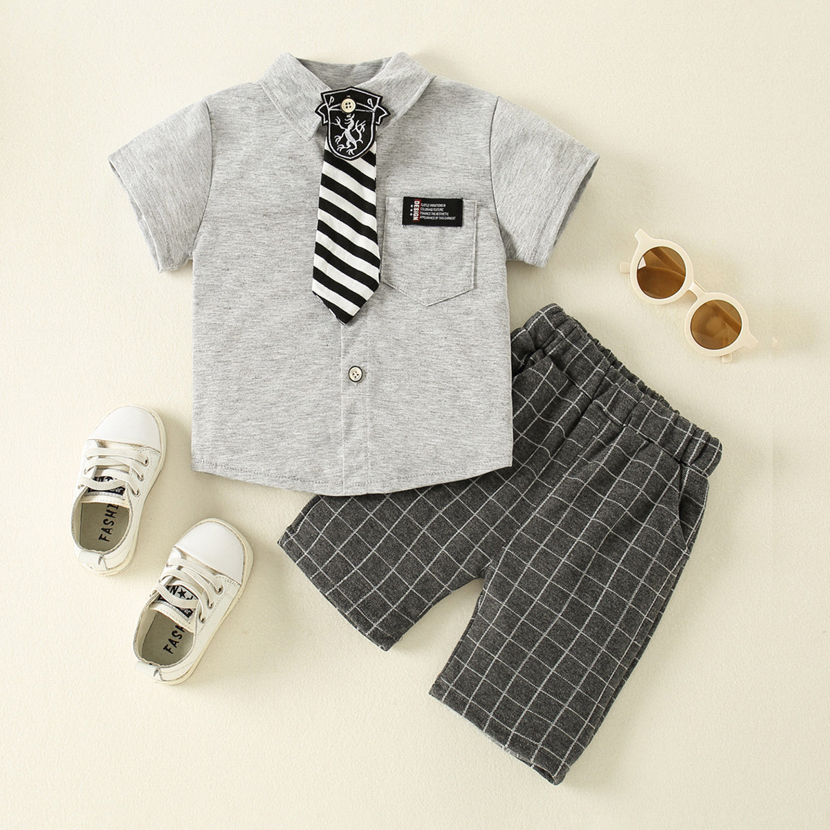 Toddler Boy Casual Plaid Tie & Shirt & Shorts Wholesale