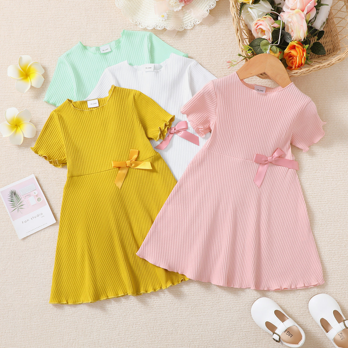 Toddler Girl Cute Bow Knot Decor Solid Color Dress Wholesale