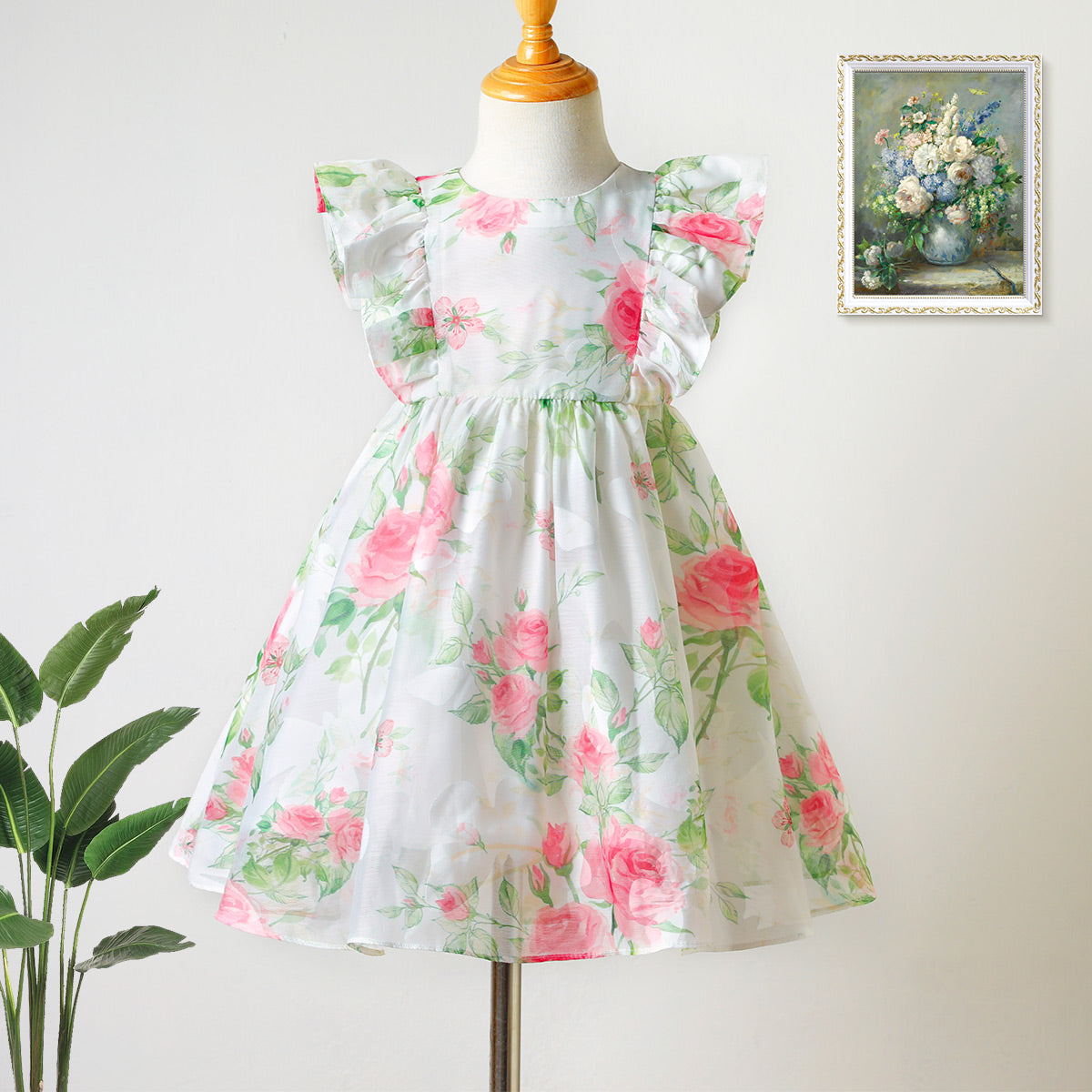 Toddler Girl Rose Flower Princess Style Dress Wholesale