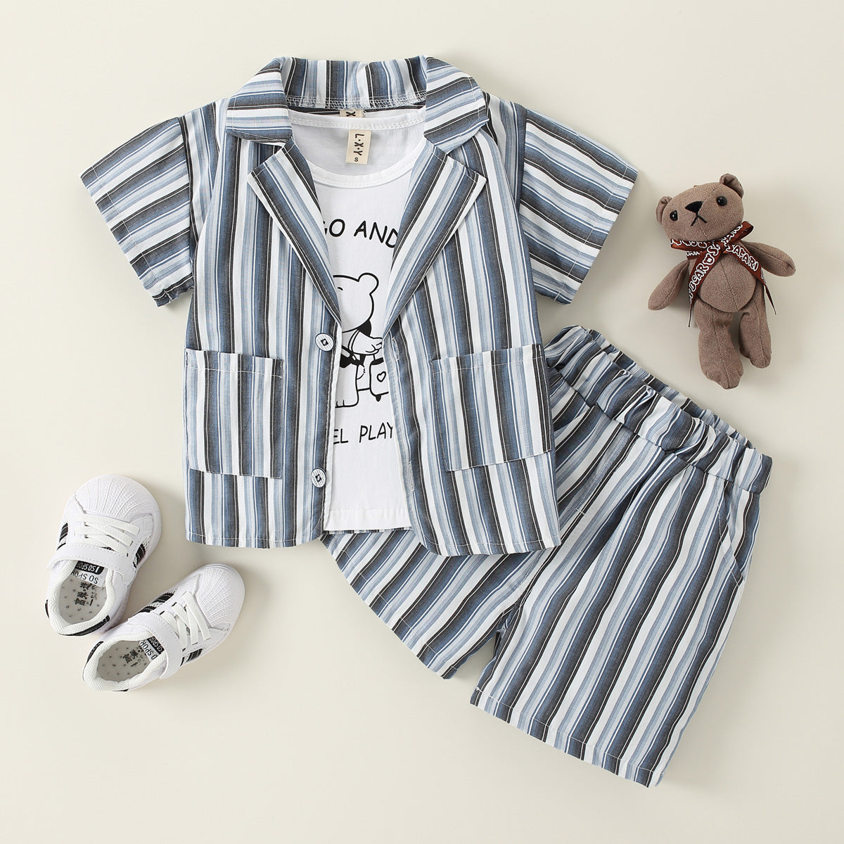 Toddler Boy Cartoon Pattern Short sleeved T-shirt & Stripes Suit & Stripes Shorts Wholesale