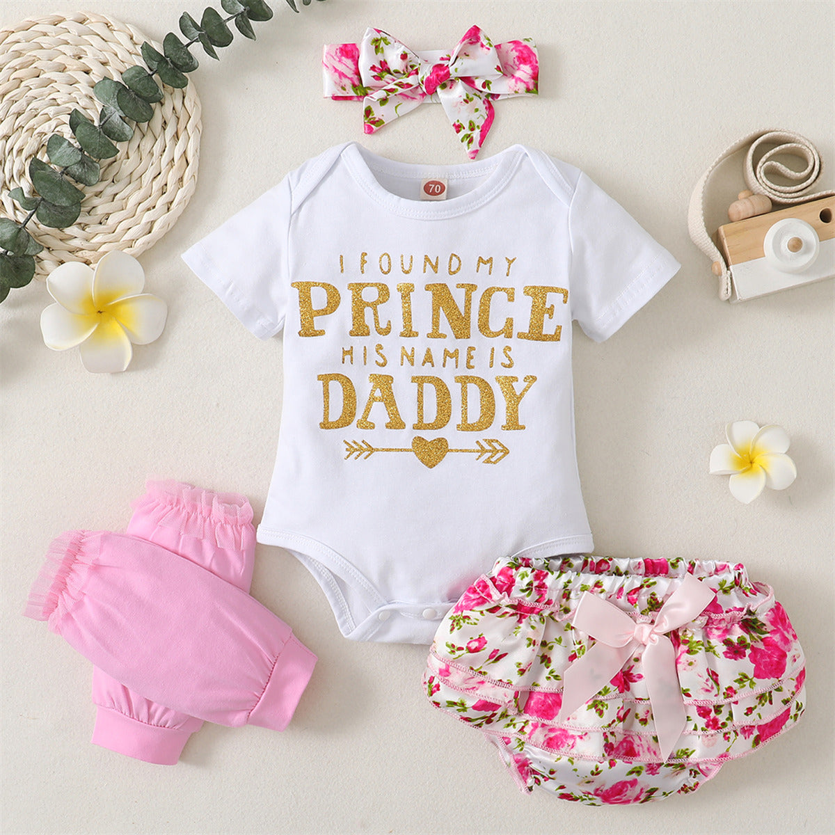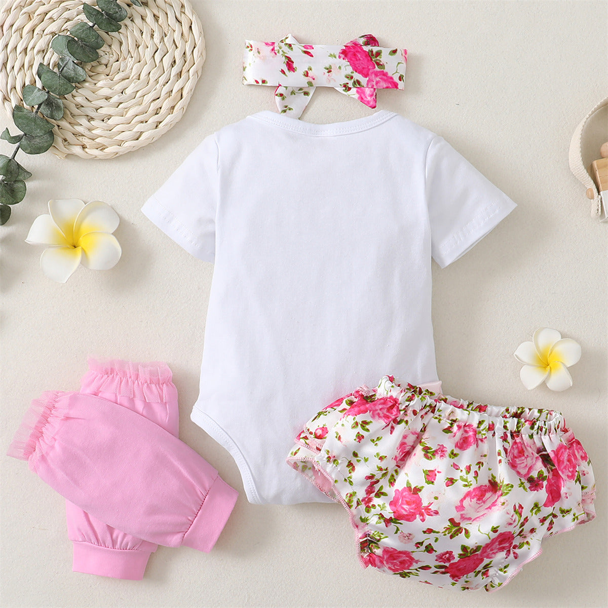Baby Girl Letter Pattern Bodysuit & Floral Shorts & Headband & Knee pads Wholesale