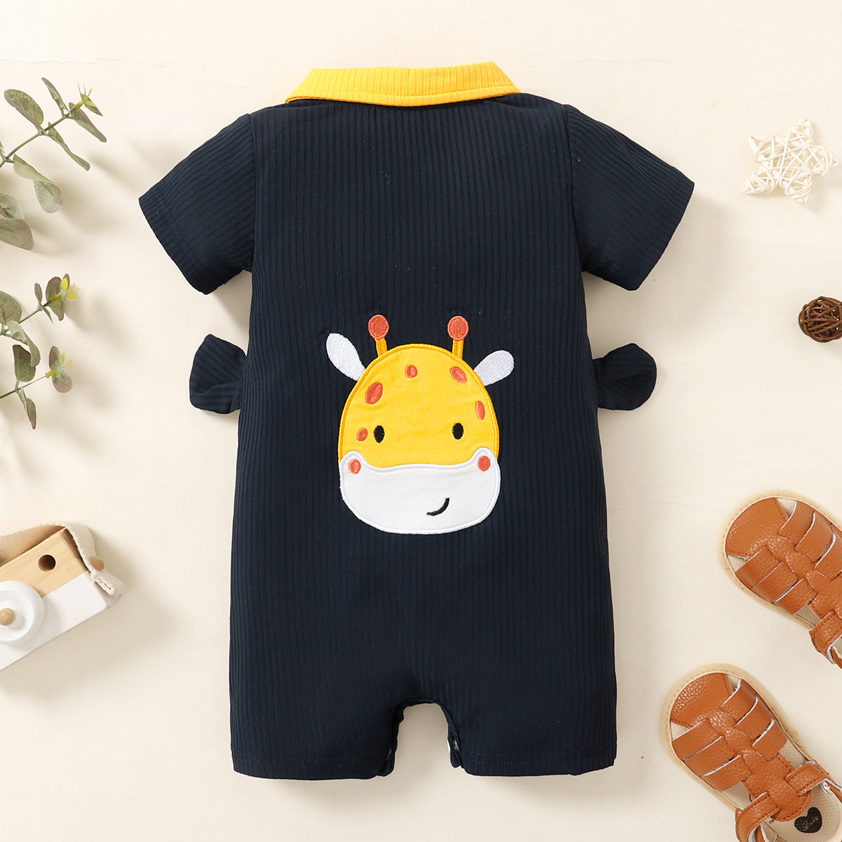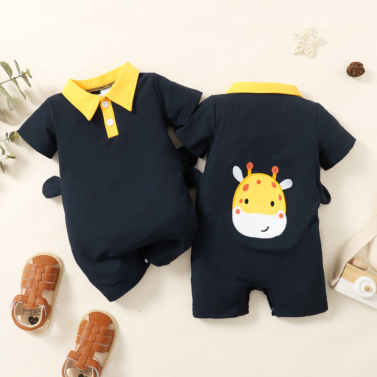 Baby Boy Color-block Applique Giraffe Pattern Polo-Collar Romper Wholesale