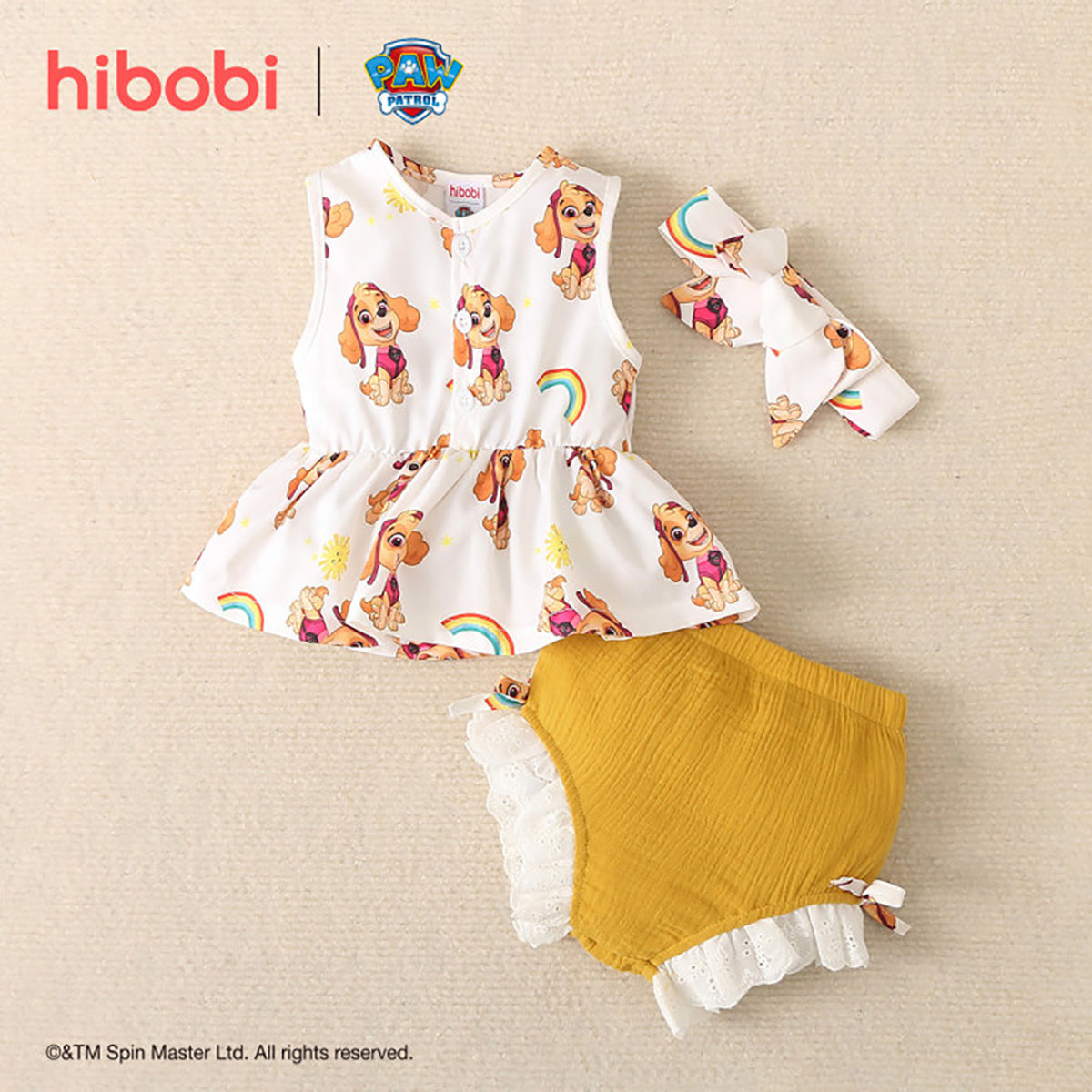 hibobi×PAW Patrol Baby Girl Cartoon Print T-Shirt & Shorts & Headband Wholesale