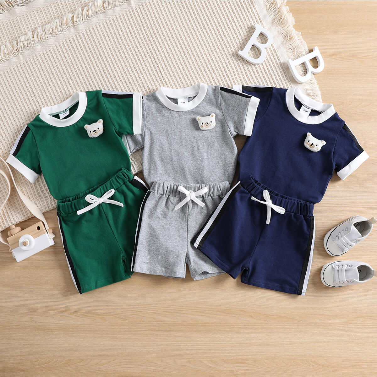 Baby Boy 2 Pieces Sporty Color-Block Applique Bear Decor T-Shirt & Shorts Wholesale