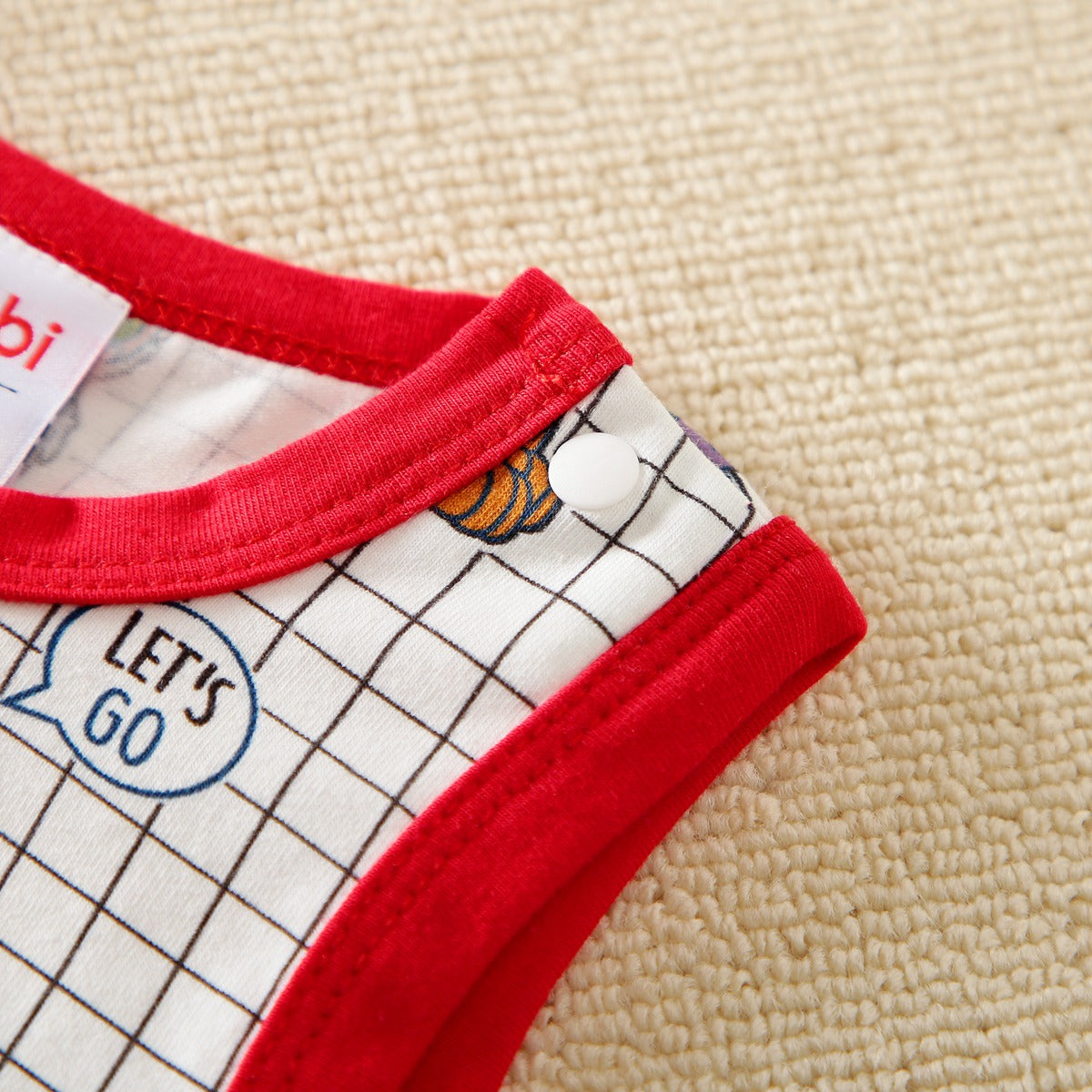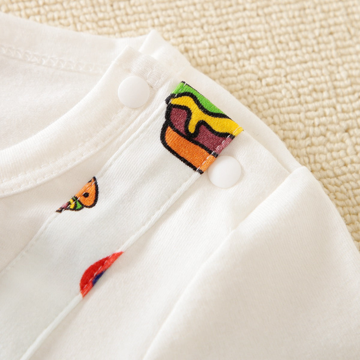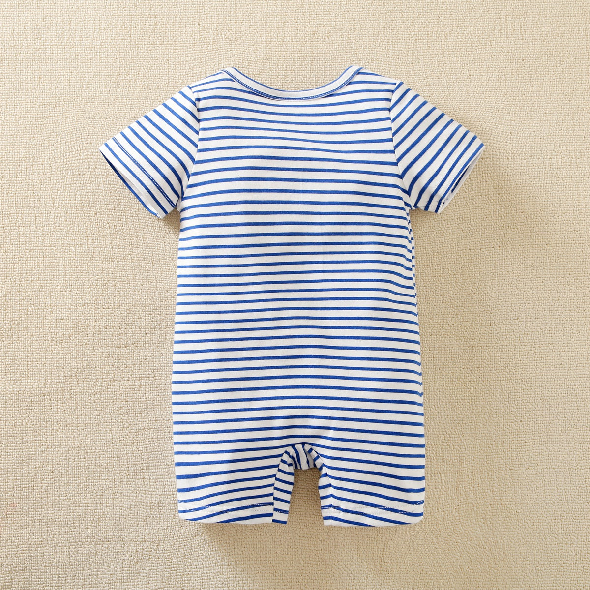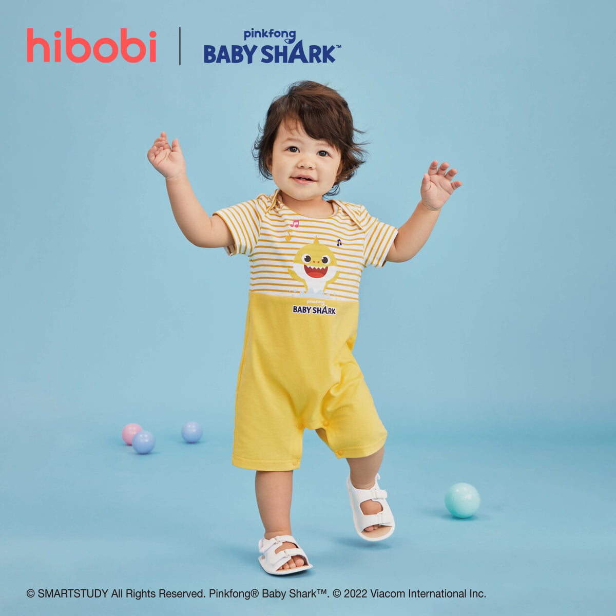 hibobi×Babyshark Baby Cartoon Print & Stripes Short Sleeve Cotton Jumpsuit Wholesale