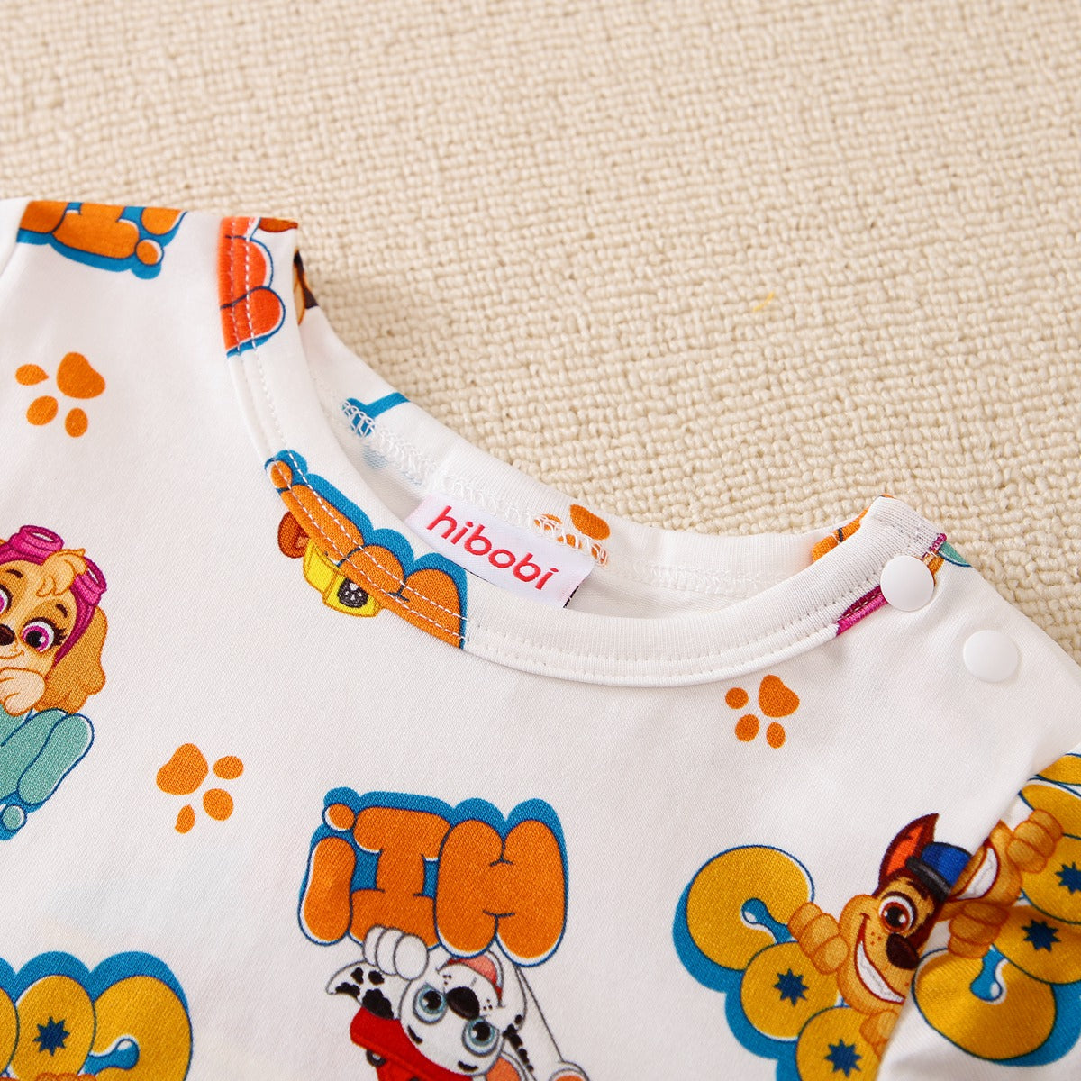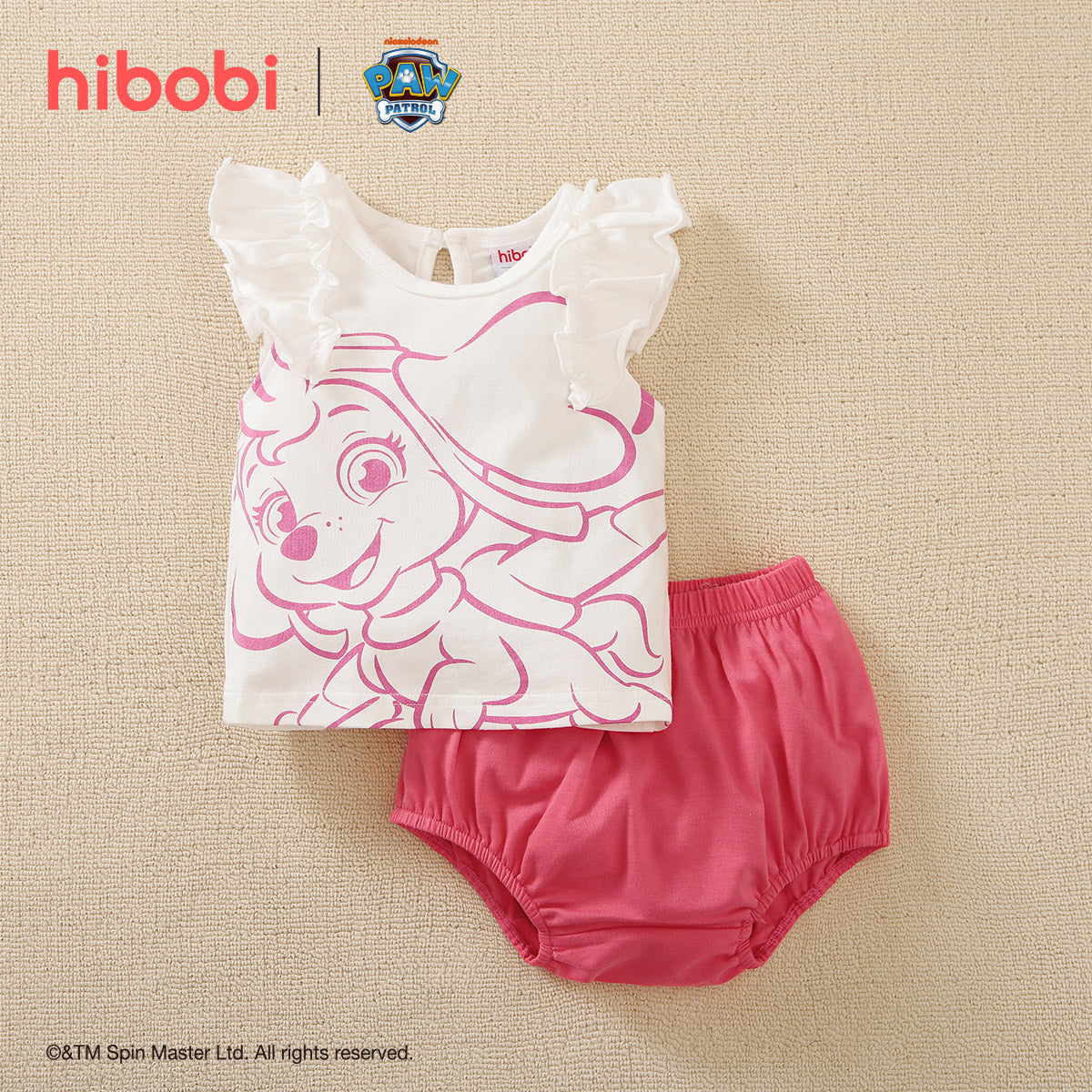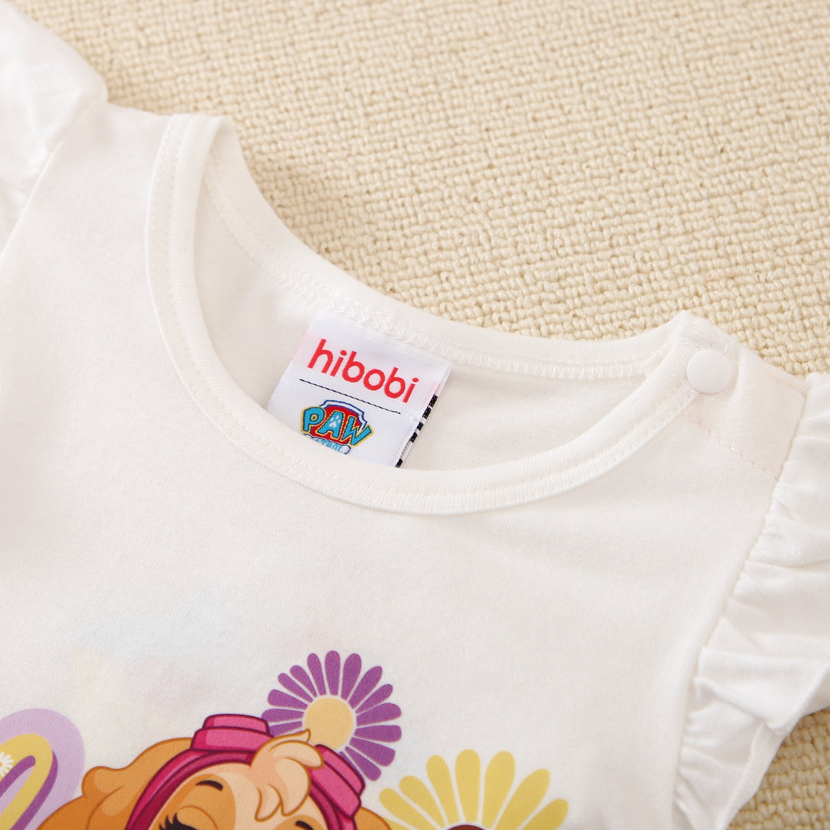 hibobi×PAW Patrol Baby Girl Cartoon Print Ruffle Short Sleeve T-shirt and Pants Set Wholesale