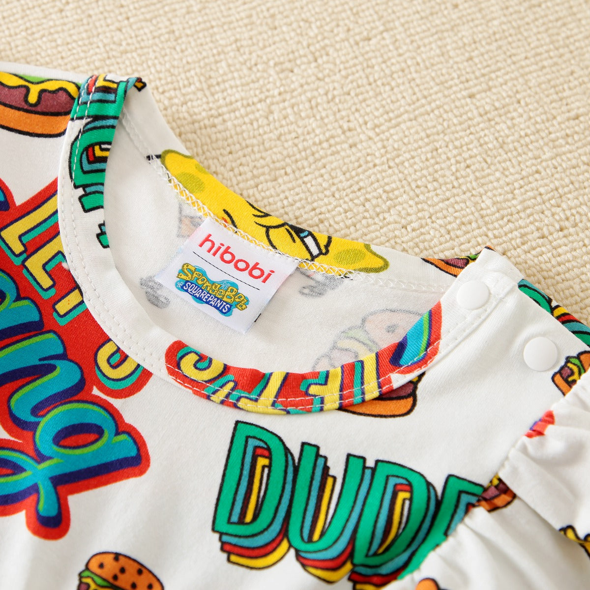 hibobi×Spongebob Baby Girl Cartoon Print Ruffle Short Sleeve Cotton Bodysuit Wholesale