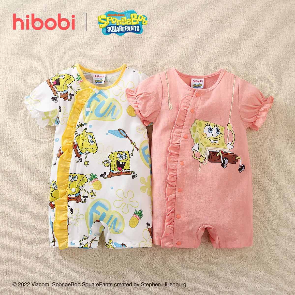 hibobi×Spongebob Baby Girl Cartoon Print Ruffle jumpsuit Wholesale