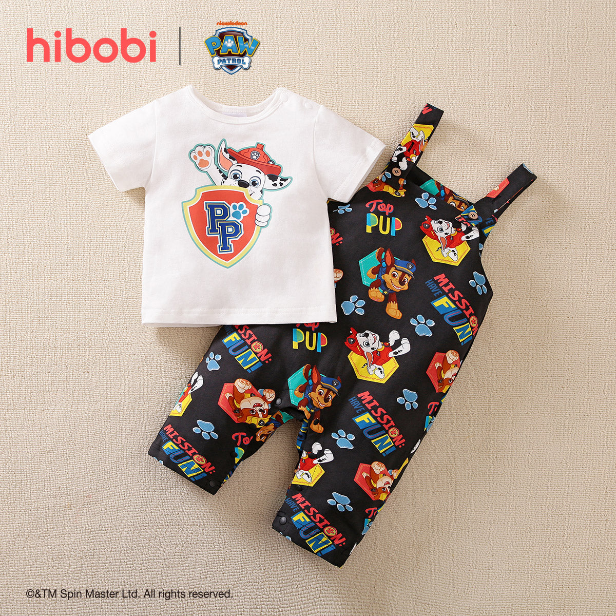 hibobi×PAW Patrol Baby Boy Cartoon Print Short Sleeve Cotton T-shirt and Suspender Pant Wholesale