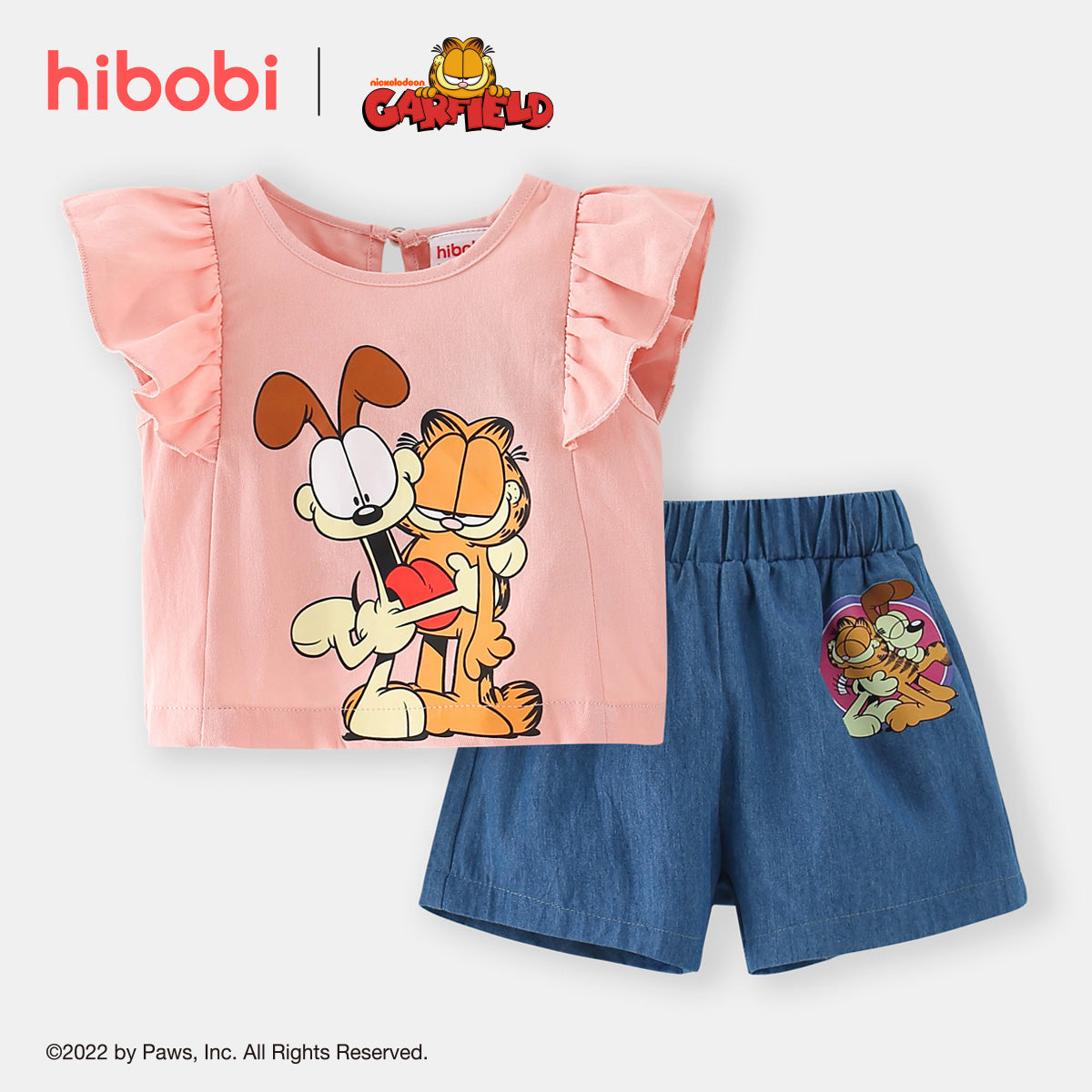 hibobi x Garfield Toddler Girls Sweet Cute Printing Fly Sleeves Suit Wholesale