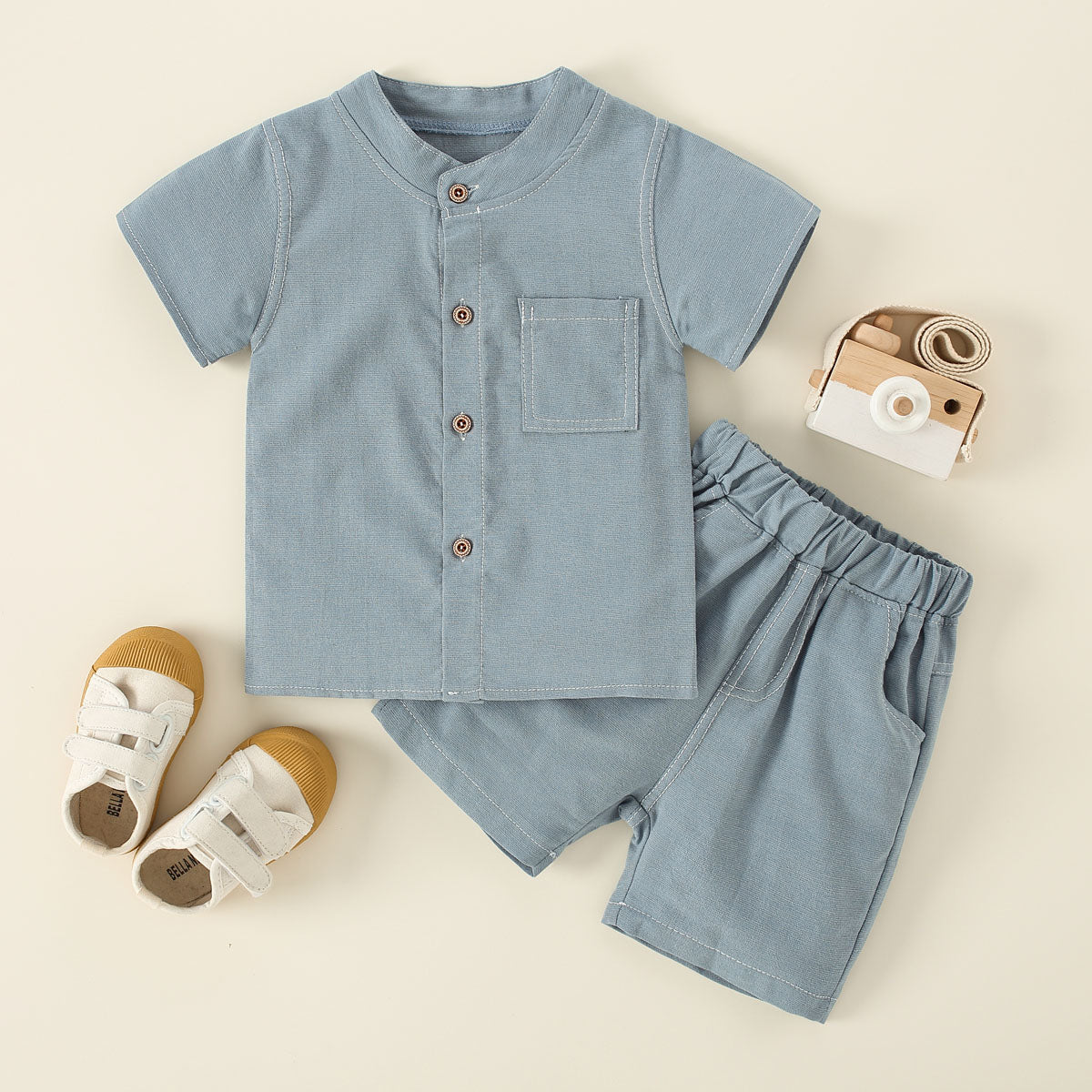 Toddler Boy Solid Pattern Short Sleeve Top & Short Pants Wholesale