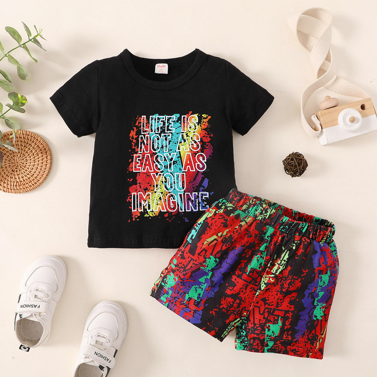 Toddler Boy Letter Freehand Sketch Solid Top & Shorts Wholesale