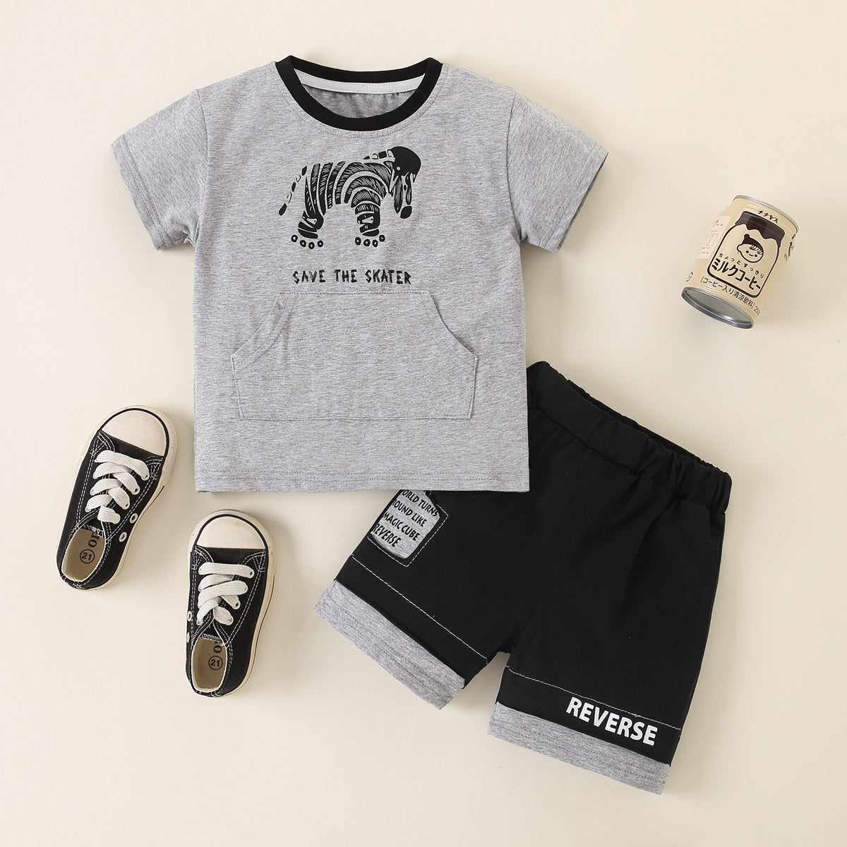 Toddler Boy Zebra Pattern Short Sleeve Top & Short Pants Wholesale