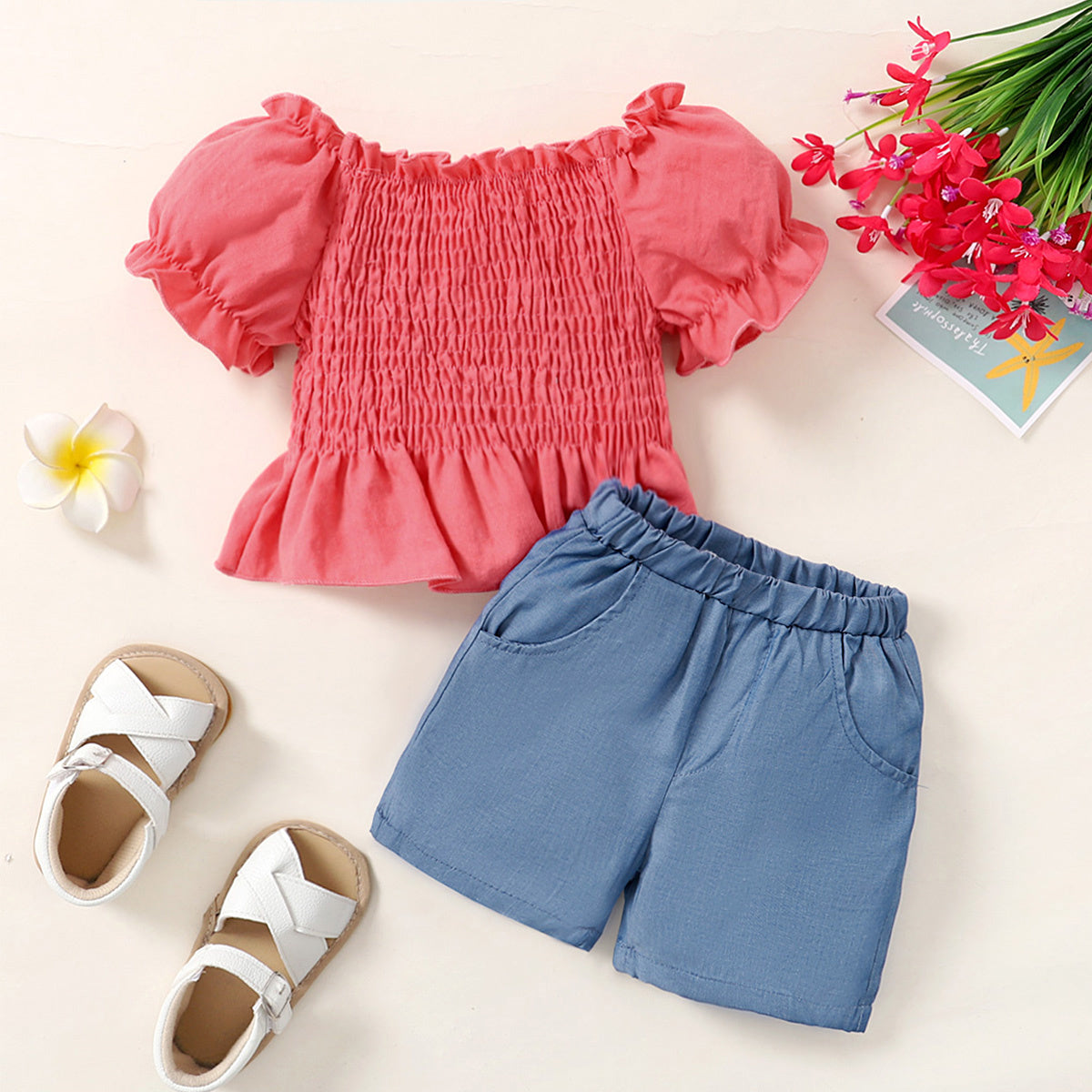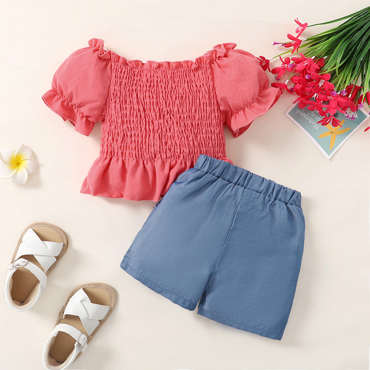 Toddler Girls Cotton Sweet Pleats Top & Short Wholesale
