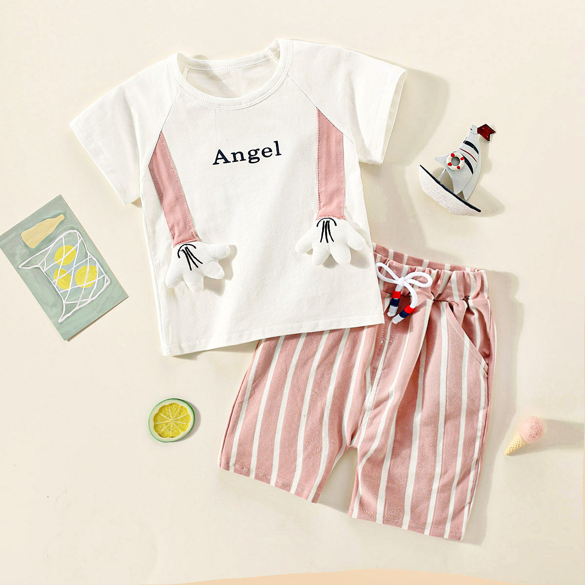 Toddler Boy Casual Striped Cartoon Polo Shirt & Shorts Wholesale