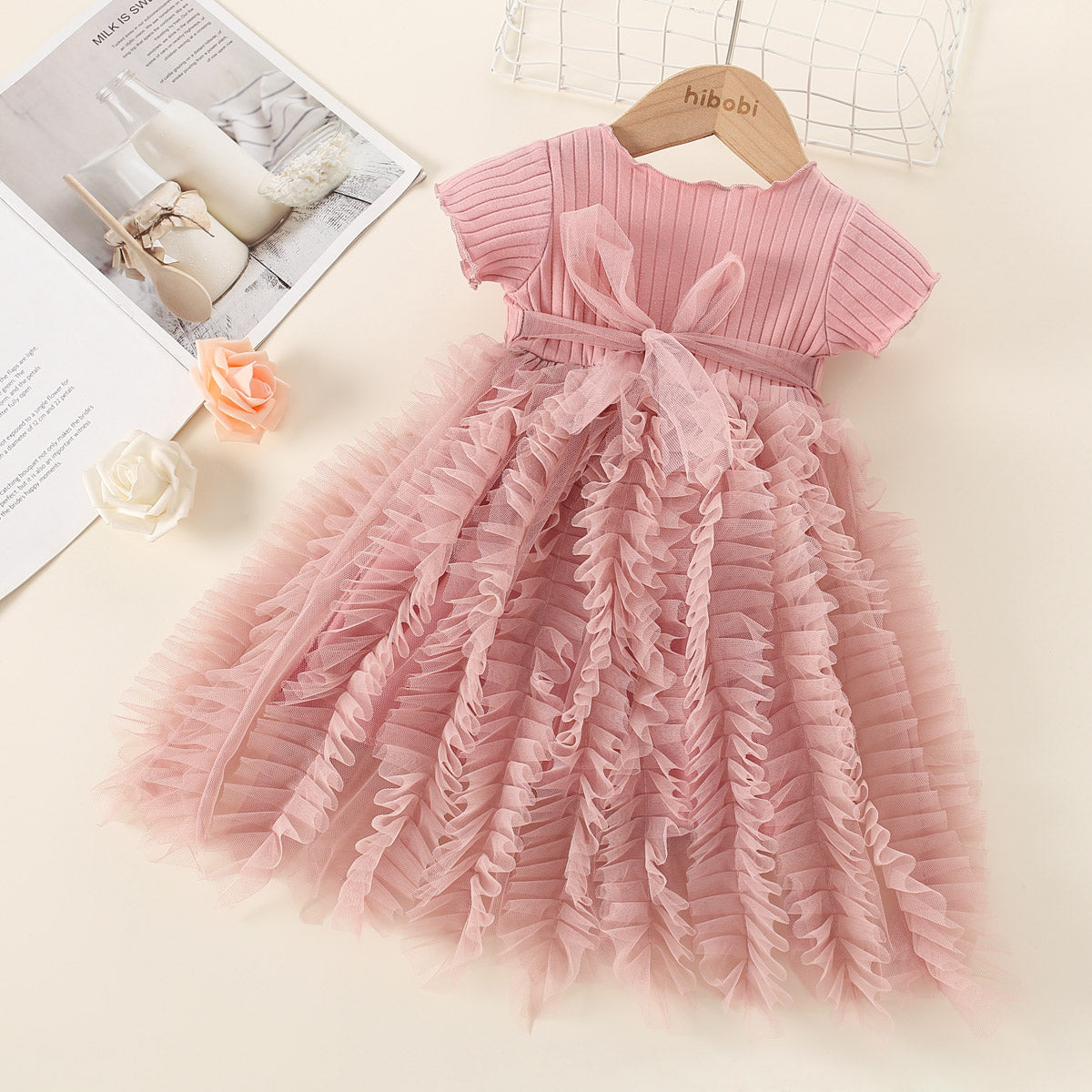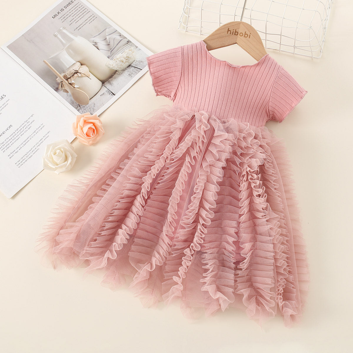Toddler Girl Cute Tulle Press Solid Color Dress Wholesale