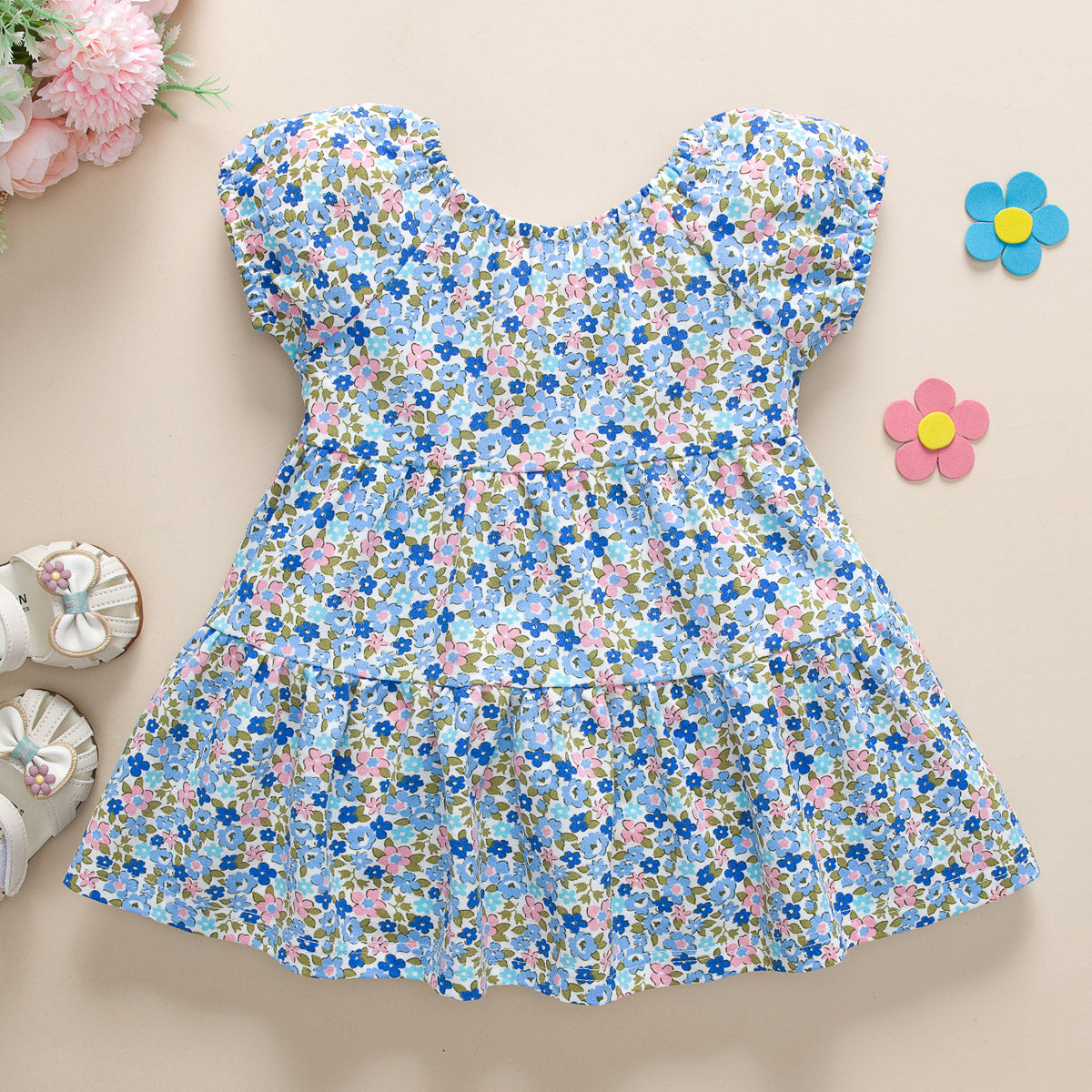 Baby Girl Floral Pattern Back Cutout Bow-knot Decor Dress Wholesale