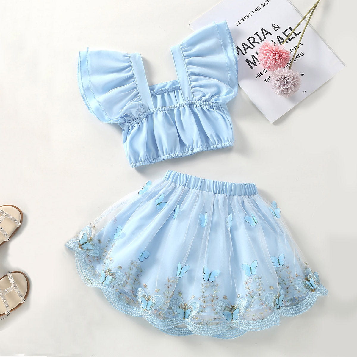 Toddler Girl Eleguard Jacquard Fabric Butterfly Tank Top & Skirt Wholesale