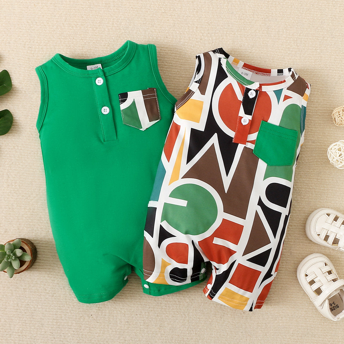 Baby Boy Cute Pocket Decor Letter Pattern Sleeveless Romper Wholesale