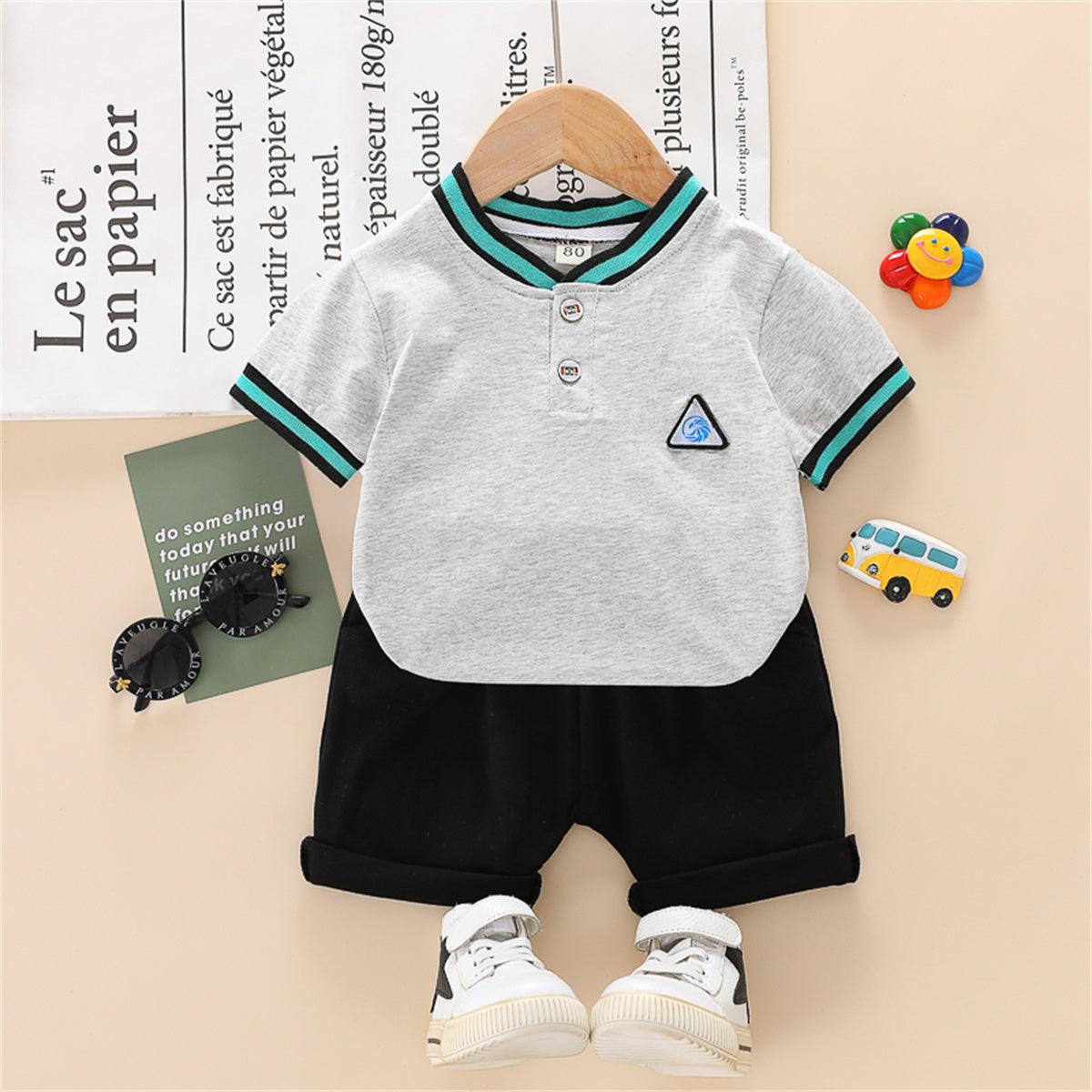 Toddler Boy Geometric Pattern Short Sleeves Top & Shorts Wholesale