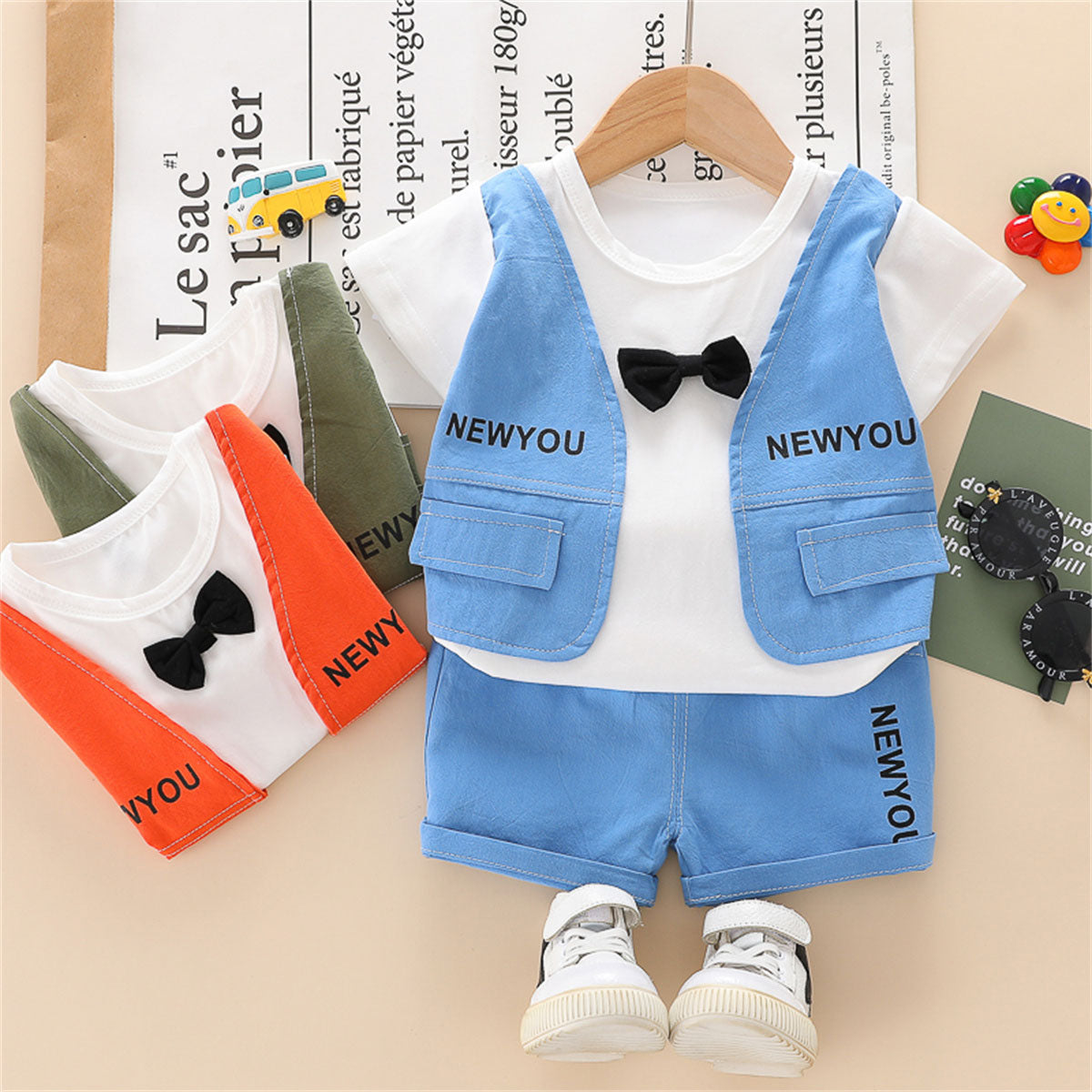 Toddler Boy Mock Two-Piece Letter Patterns Top & Shorts Wholesale